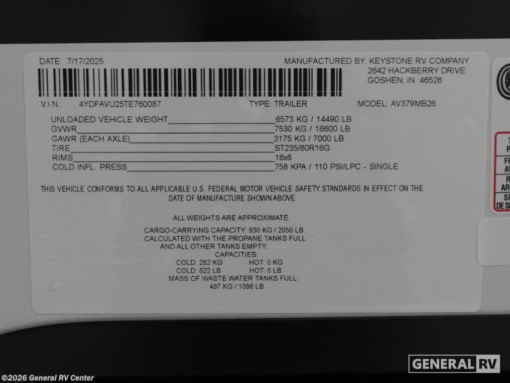 Request More Info on this 2026 Keystone Avalanche 379MB Offered for sale by General RV Center