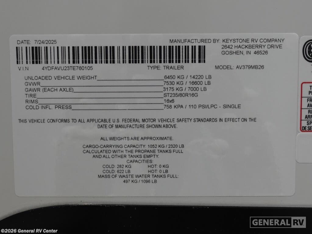 Request More Info on this 2026 Keystone Avalanche 379MB Offered for sale by General RV Center