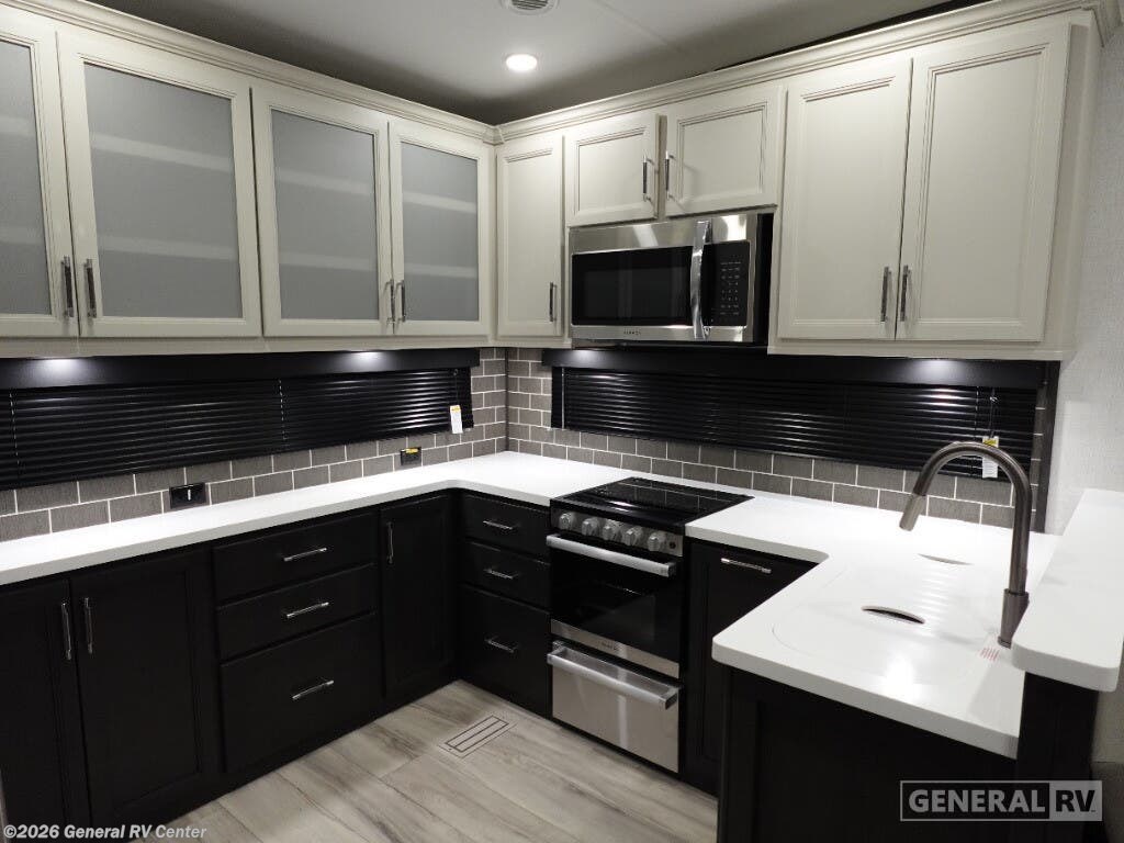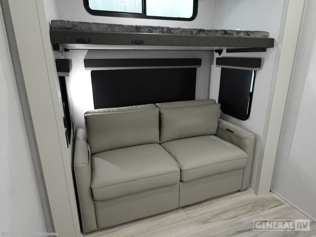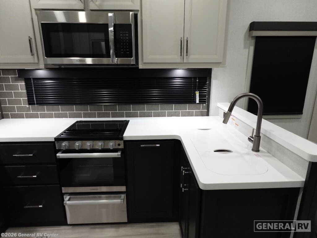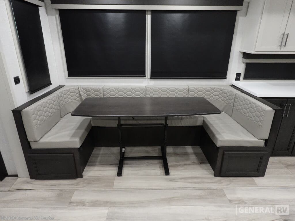 **Keystone Alpine Avalanche Edition fifth wheel 379MB highlights:** - U-Shaped Dinette - Middle Bunkhouse - Shower with a Seat - Four Slides - Bedroom Master Closet - Fireplace The whole gang will love camping in this fifth wheel since there is space for everyone! A front master bedroom includes a king bed slide out, master closet, and stackable washer and dryer prep if you choose to go full-time. Your guests or little ones will love the middle bunkhouse with a flip bunk above a hide-a-bed sofa, along with a pull-out table and storage space. Everyone can meet in the living area which features dual opposing slides for more space, theater seating, a sleeper sofa, and a U-shaped dinette, providing even more sleeping space. And check out the rear kitchen with its wrap-around counter space, Furrion appliances, and large pantry to keep snacks stocked! With any Keystone luxury Alpine Avalanche Edition fifth wheel, you will experience wide-body construction that allows you to stretch out and stay awhile during any season thanks to the Polar Pack All Season Protection that includes a heated and enclosed underbelly, an Astro foil reflective layer on the roof, front and rear walls, and two static attic vents, plus more! The interior offers hardwood slide out fascia with wood accents, designer upholstered window valances with custom wood window frame, plus your choice of modern interior design. There are many more Keystone exclusives, like the Tru-Fit slide construction, the in-floor heating ducts, KeyTV™, and much more to bring you a full-packed, luxury fifth wheel!
