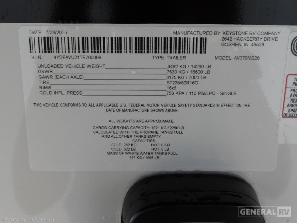 Request More Info on this 2026 Keystone Avalanche 379MB Offered for sale by General RV Center