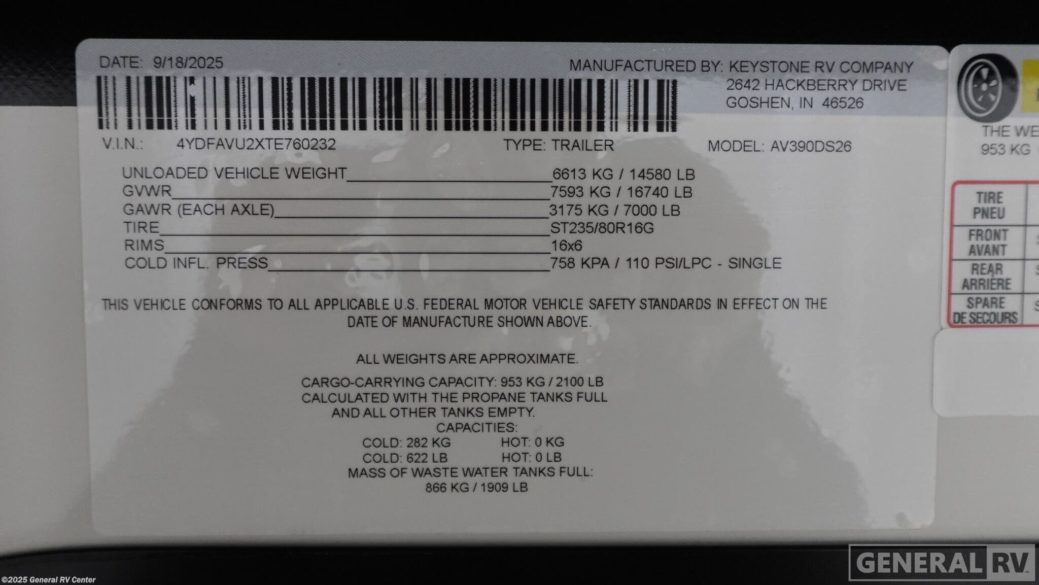 Request More Info on this 2026 Keystone Avalanche 390DS Offered for sale by General RV Center