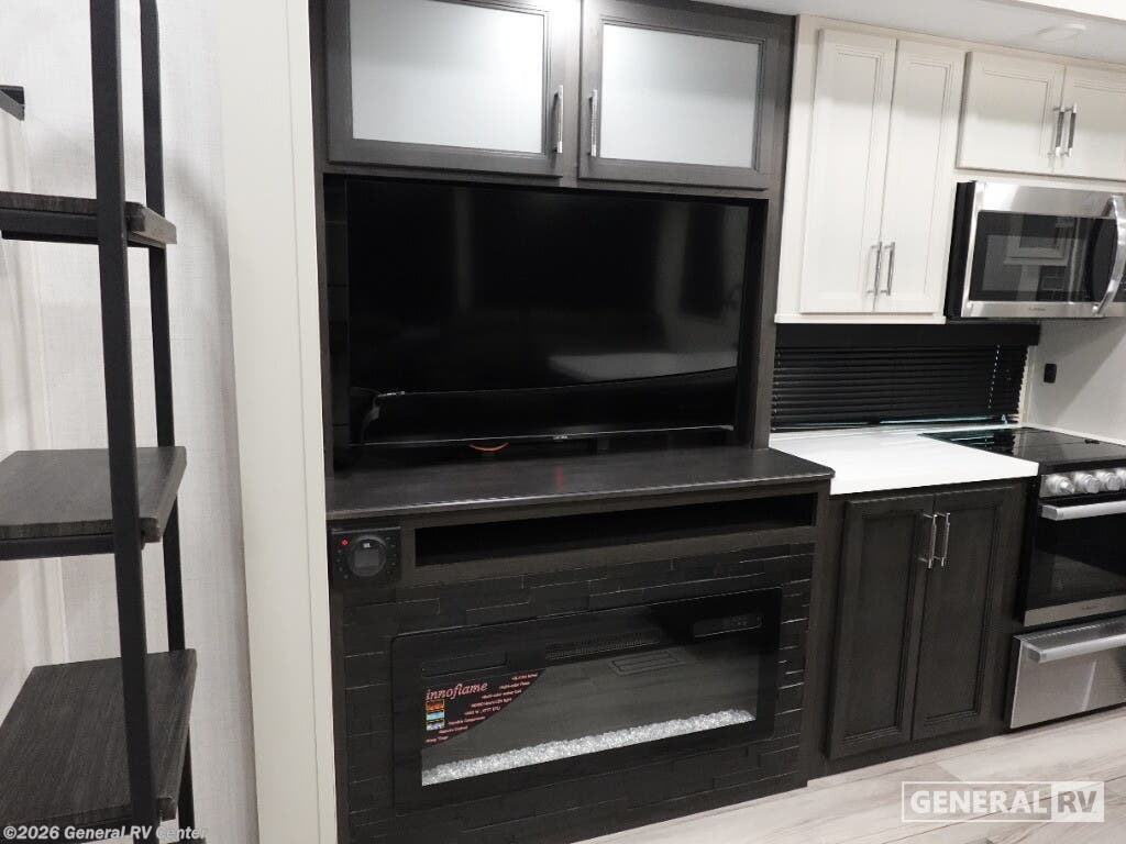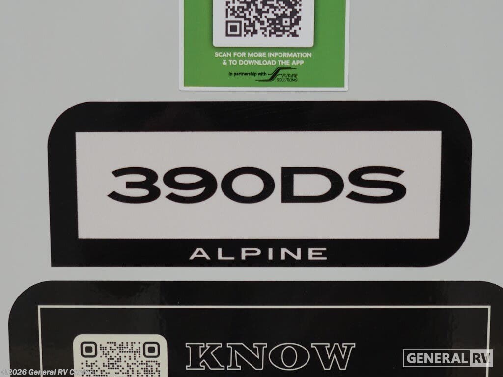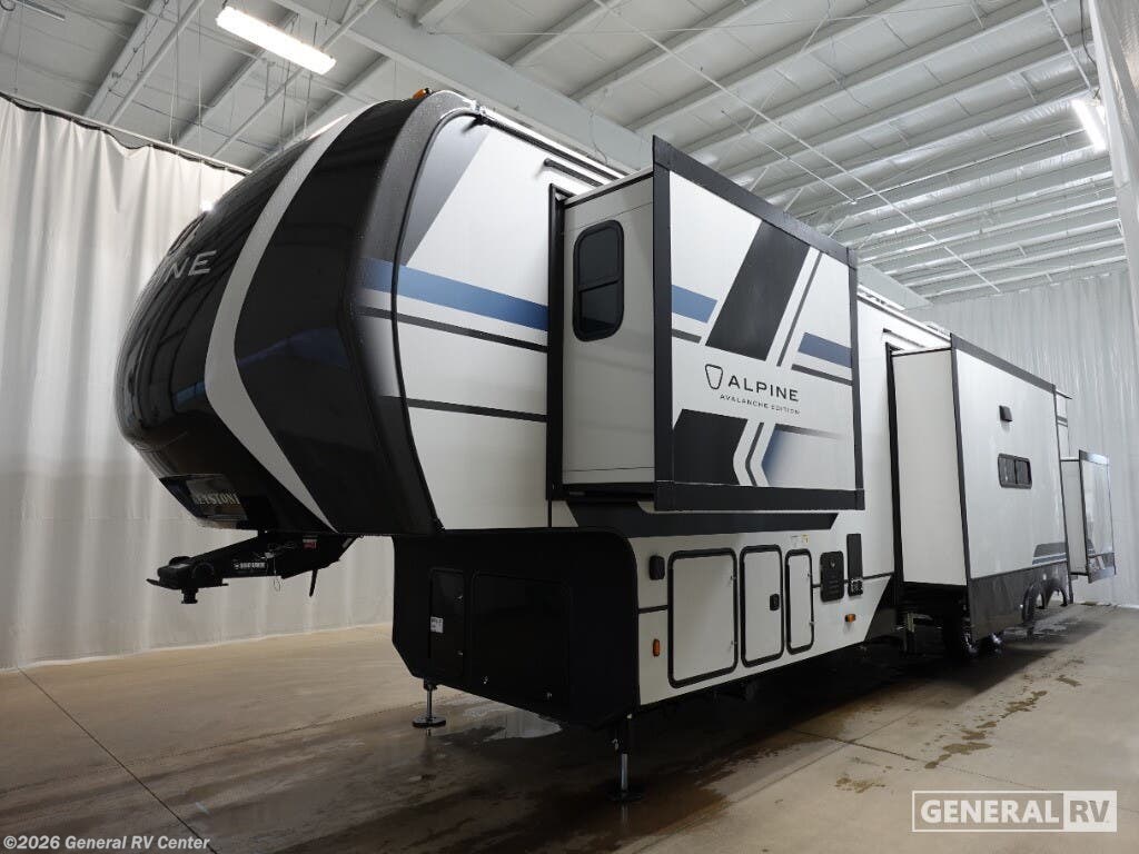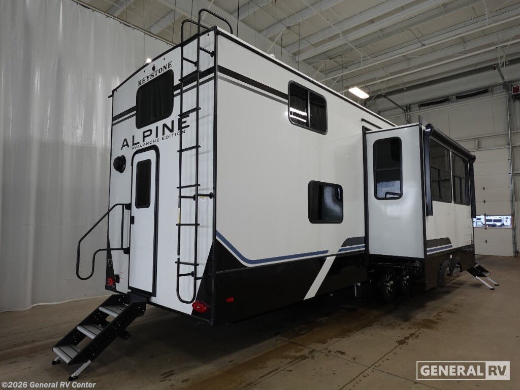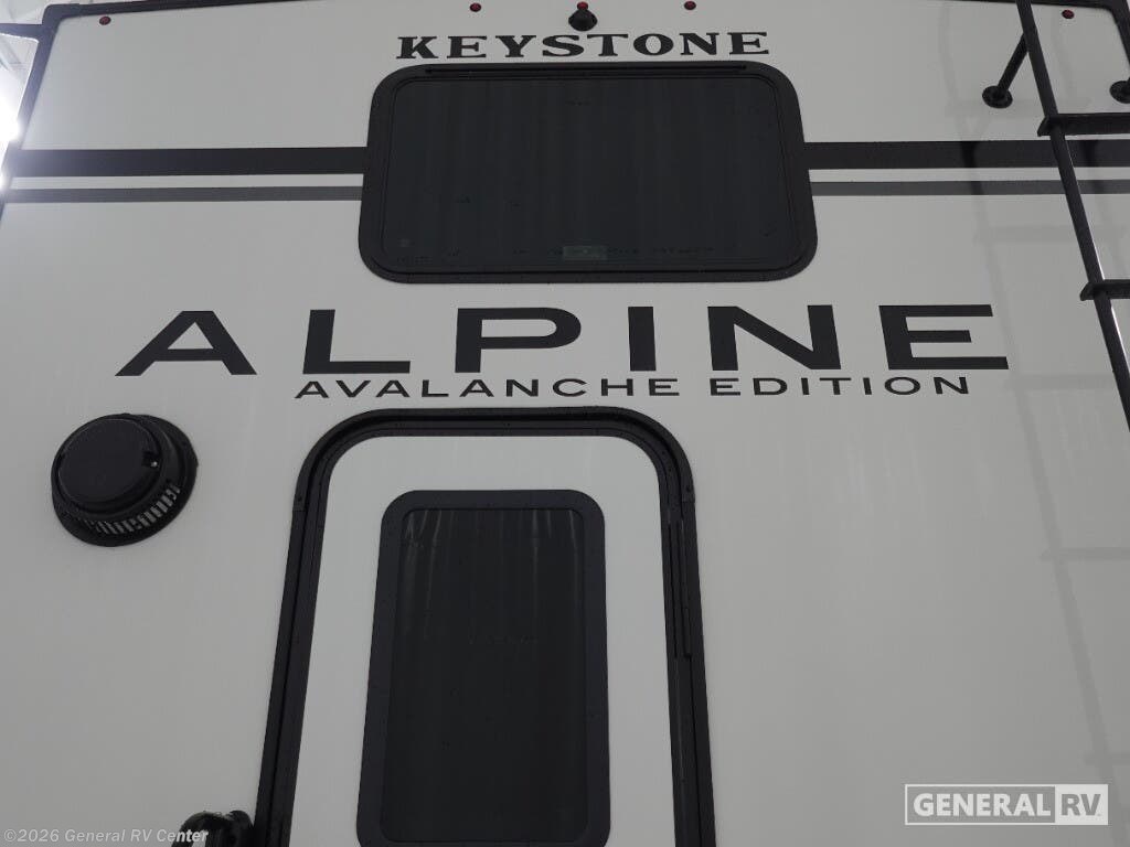 **Keystone Alpine Avalanche Edition fifth wheel 390DS highlights:** Two Bedrooms Loft Area Two Full Bathrooms Dual Entry Fireplace Get ready for family fun in this fifth wheel offering a front master bedroom with a king-size bed slide, plus a second master bedroom for your guests! The second bedroom includes a queen-size bed slide, a loft above the bedroom that sleeps three more, plus a rear full bathroom including a unique rear entry/exit door. And both entrances include the LCl SolidStep. The main living and kitchen area offers dual opposing slides and include theater seating, a free standing dinette, a fireplace, a center island and full kitchen amenities to feed your entire crew. With any Keystone luxury Alpine Avalanche Edition fifth wheel, you will experience wide-body construction that allows you to stretch out and stay awhile during any season thanks to the Polar Pack All Season Protection that includes a heated and enclosed underbelly, an Astro foil reflective layer on the roof, front and rear walls, and two static attic vents, plus more! The interior offers hardwood slide out fascia with wood accents, designer upholstered window valances with custom wood window frame, plus your choice of modern interior design. There are many more Keystone exclusives, like the Tru-Fit slide construction, the in-floor heating ducts, KeyTV™, and much more to bring you a full-packed, luxury fifth wheel!