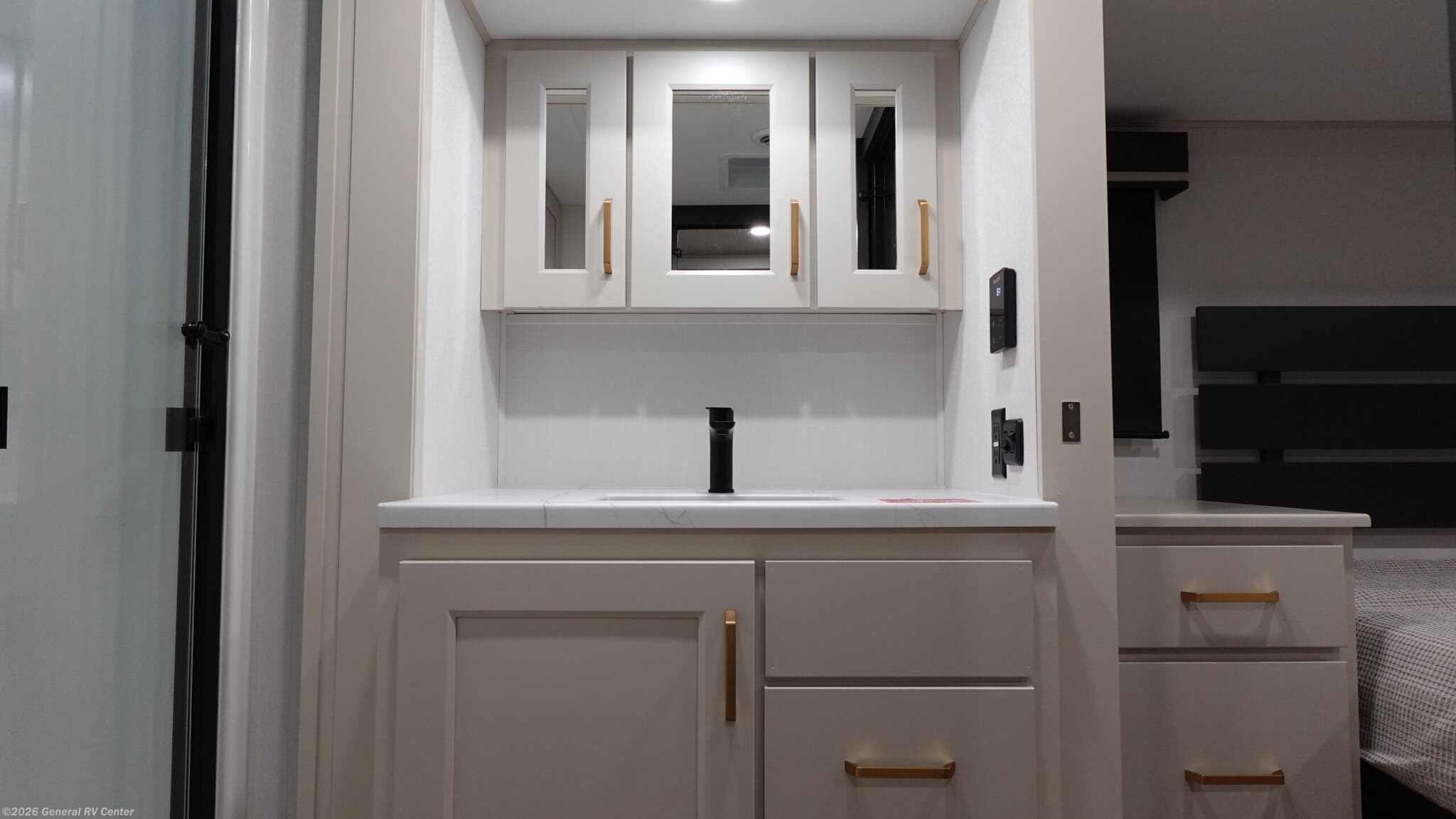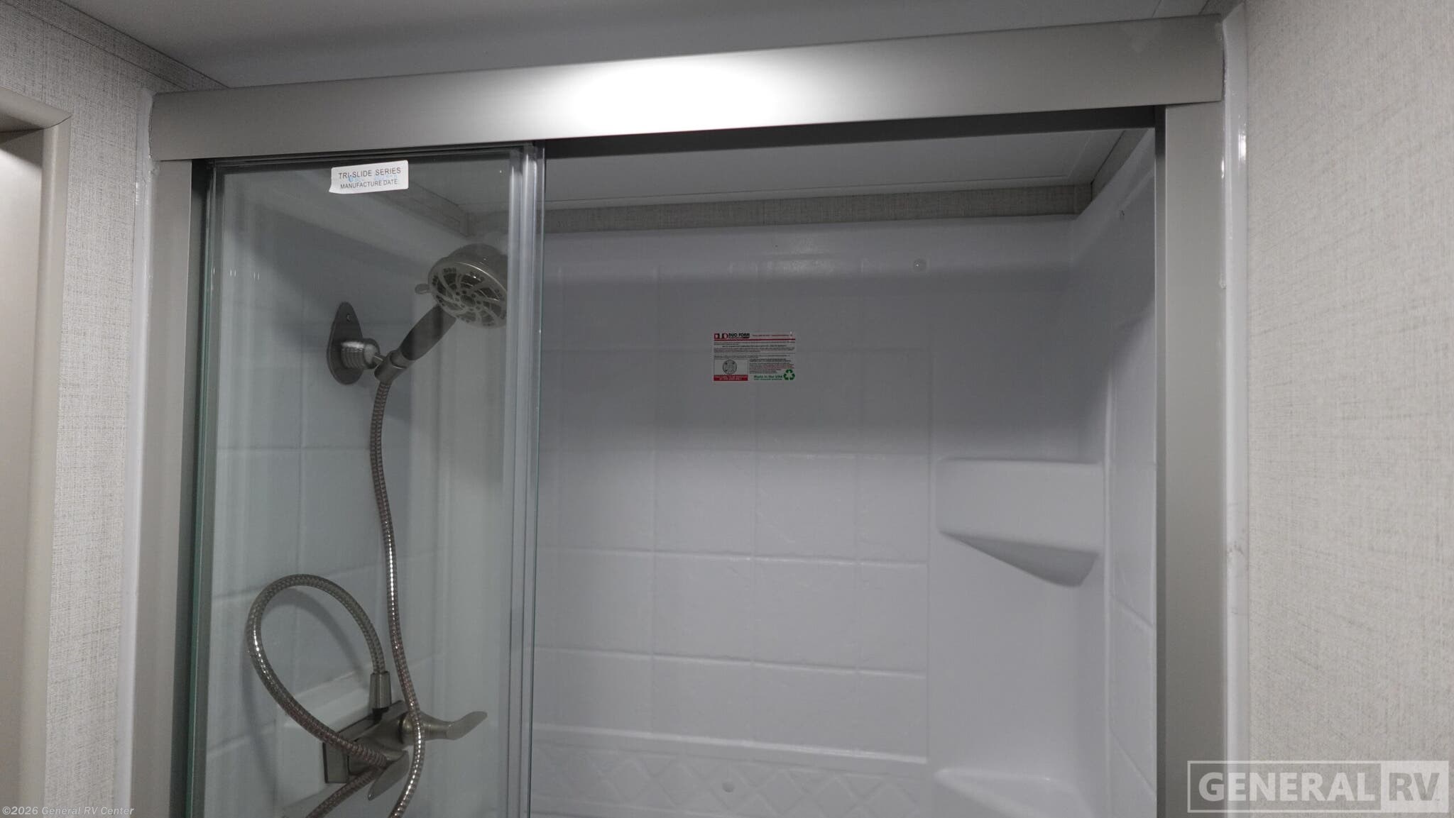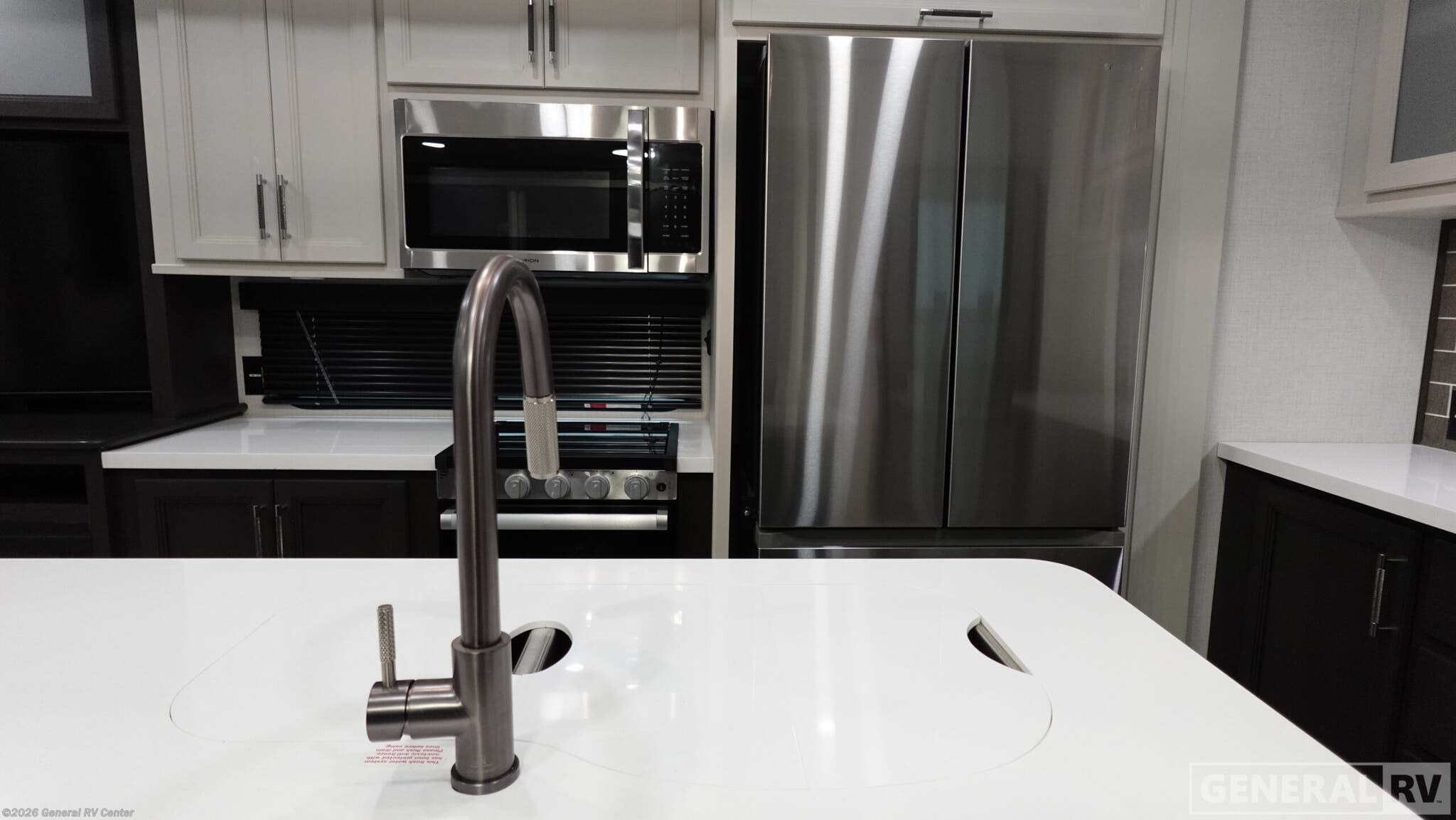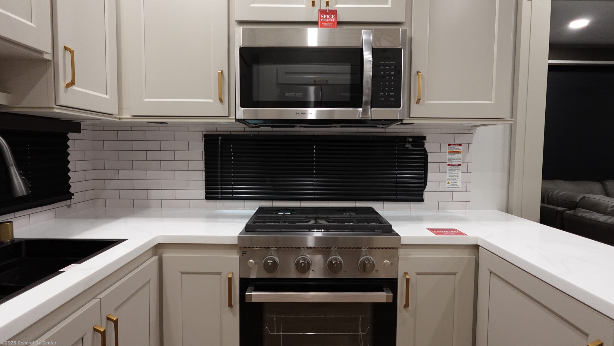 Discover the 2026 Keystone Avalanche 390DS, a remarkable fifth wheel designed to elevate your adventures. At nearly 43 feet in length, this spacious RV offers an inviting retreat for families and friends, comfortably sleeping up to seven. The dual suite design features a luxurious king bed in the master suite and a cozy queen bed in the secondary suite, each with ample storage underneath. The bunkhouse with three bunks ensures everyone has their own space, making it perfect for larger families or group getaways. The heart of this RV lies in its thoughtfully designed living and kitchen areas. Imagine preparing meals in the center kitchen, equipped with a full-size electric refrigerator and a three-burner cooktop, while the adjacent living area offers theater seating for relaxation. Enjoy evenings by the fireplace or gather around the freestanding dinette for meals and games. The dual awnings extend your living space outdoors, providing shade and comfort for al fresco dining or simply enjoying nature. With a generous fresh water capacity of 75 gallons and dual gray and black tanks, extended stays are a breeze. The Avalanche 390DS is also prepped for a washer and dryer, adding convenience for longer journeys. Whether you're parked at a scenic campsite or exploring new destinations, this RV is your home on wheels, offering comfort and style. For more details, visit your nearest General RV dealership and step into a world of adventure with the Keystone Avalanche 390DS.