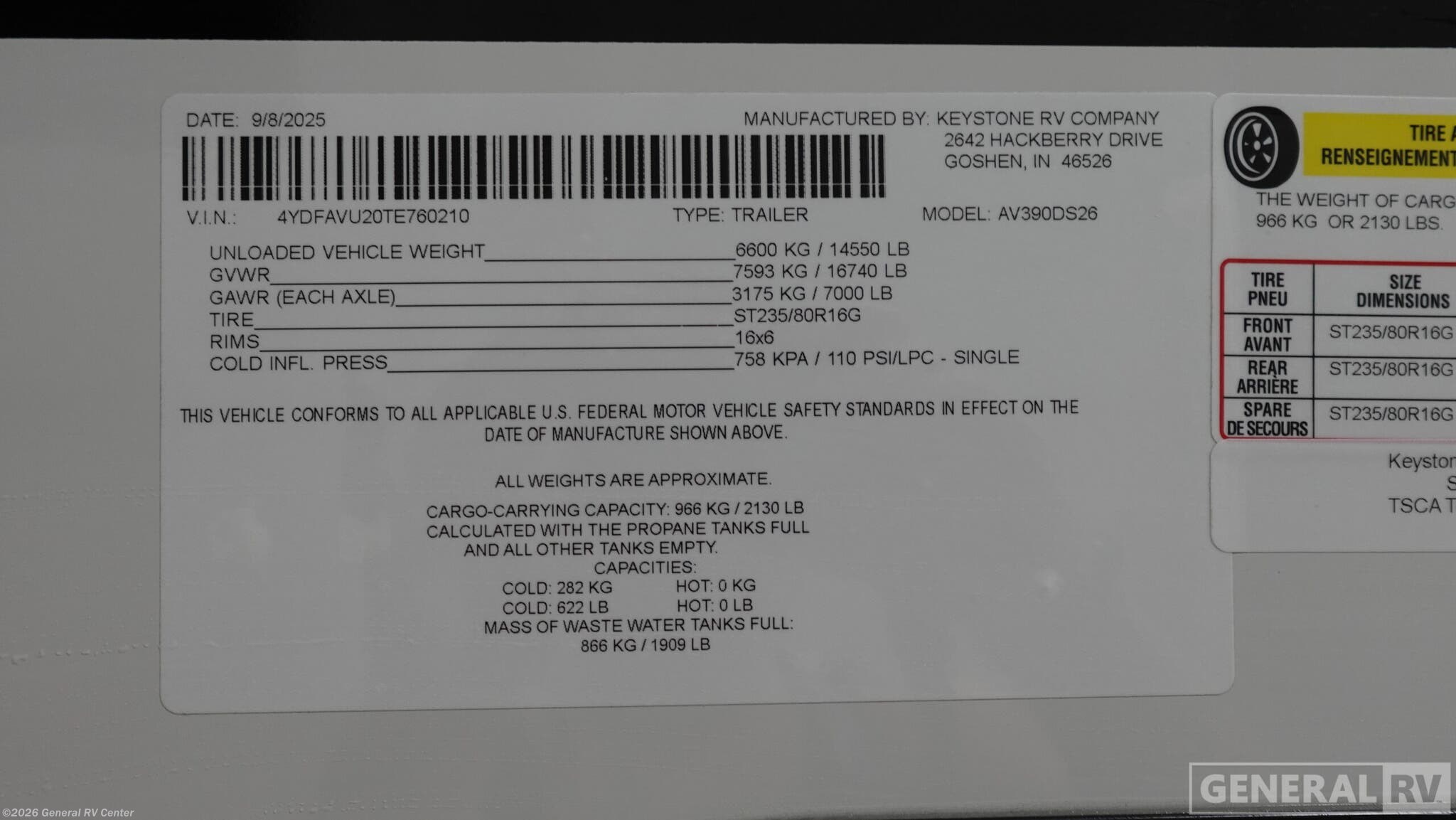 Request More Info on this 2026 Keystone Avalanche 390DS Offered for sale by General RV Center