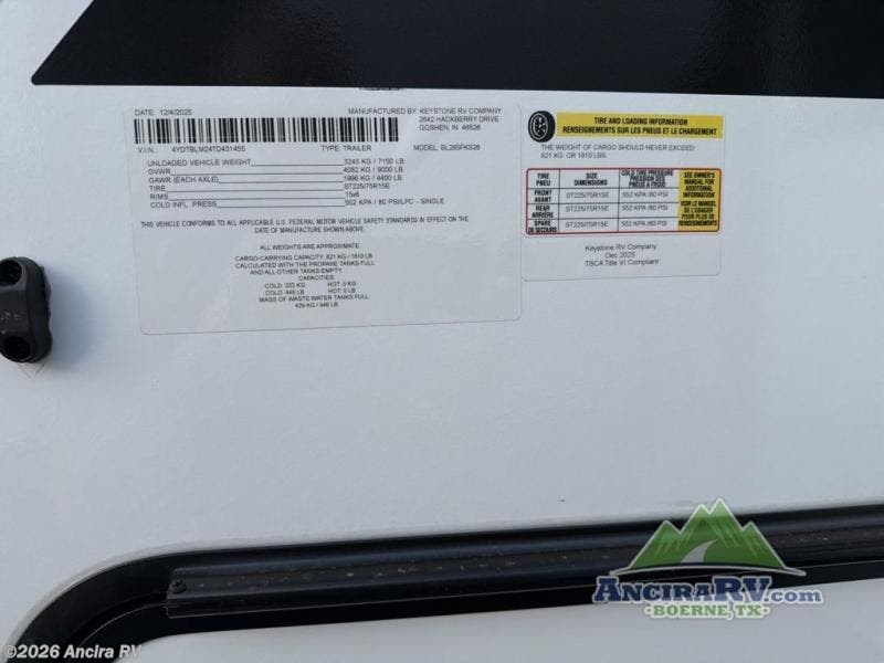 Request More Info on this 2026 Keystone Bullet 265FKS Offered for sale by Ancira RV