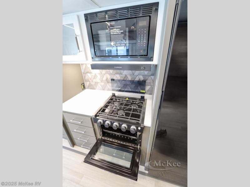 You'll be camping in style with this trailer in tow. You will wake up each morning on a king bed slide out, and there is a closet up front to easily get dressed. A wardrobe with TV prep is also found in the bedroom, along with washer/dryer prep to make wash day easier than ever. If you had guests stay over, they'll be waking up on the tri-fold sofa in the rear living area. Once everyone is ready for the day, you can make breakfast on the three burner cooktop or in the microwave oven, and there is a 10 cu. ft. refrigerator where milk and eggs can go back in. This Bullet kitchen also includes a kitchen island, a pantry, plus a hutch for ample storage space!