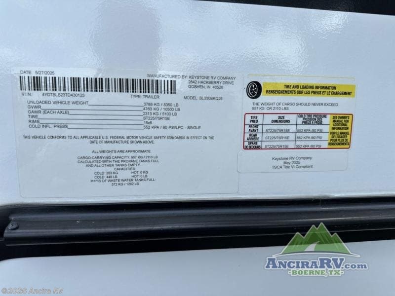 Request More Info on this 2026 Keystone Bullet 330BKQ Offered for sale by Ancira RV