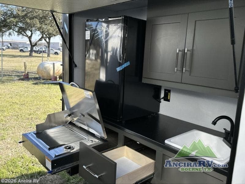 This 2026 Keystone Bullet 330BKQ is outfitted with all the features you need for happy camping. This 2026 Keystone Bullet 330BKQ welcomes you into the Keystone family! This rig sleeps 9, so it makes the perfect family RV. With three slides, this rig feels roomy and spacious inside. If you’re thinking of heading off grid, this rig has a 54 fresh water tank. While the inside of this rig is enough on its own, the outside also features slideout.