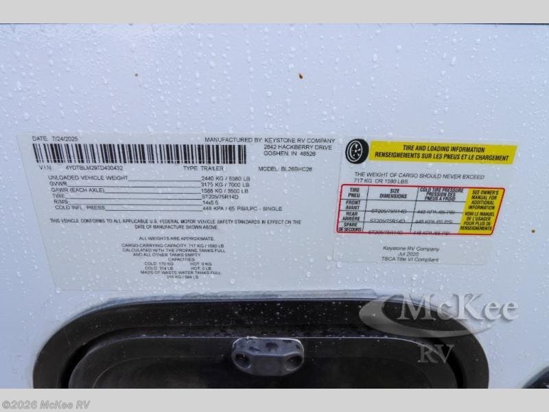 Request More Info on this 2026 Keystone Bullet Classic 26BHC Offered for sale by McKee RV
