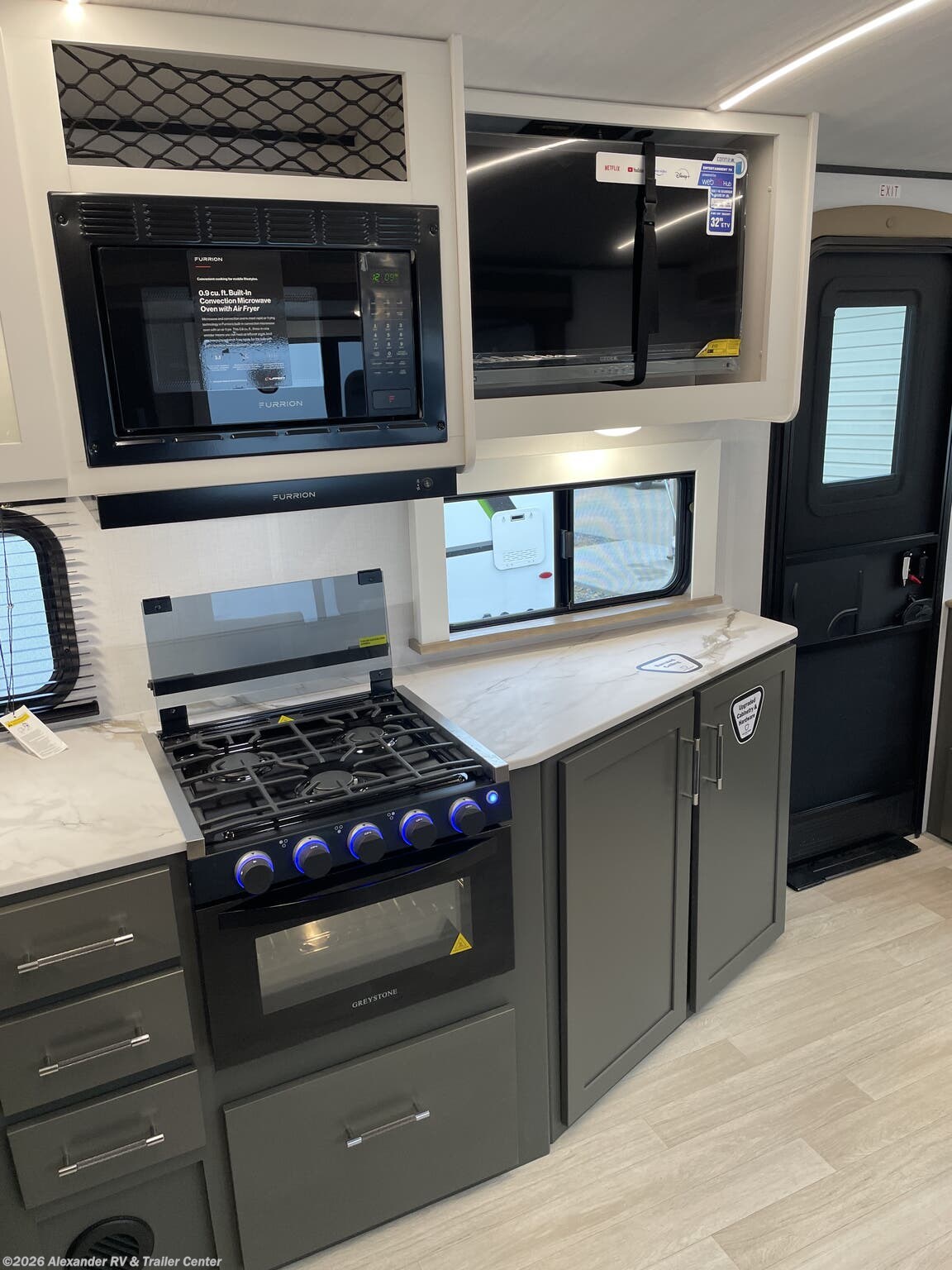 Convection Microwave, Furnace, Oven, Refrigerator, Refrigerator (12V), Stove Top Burner, Tankless Demand Gas Water Heater -