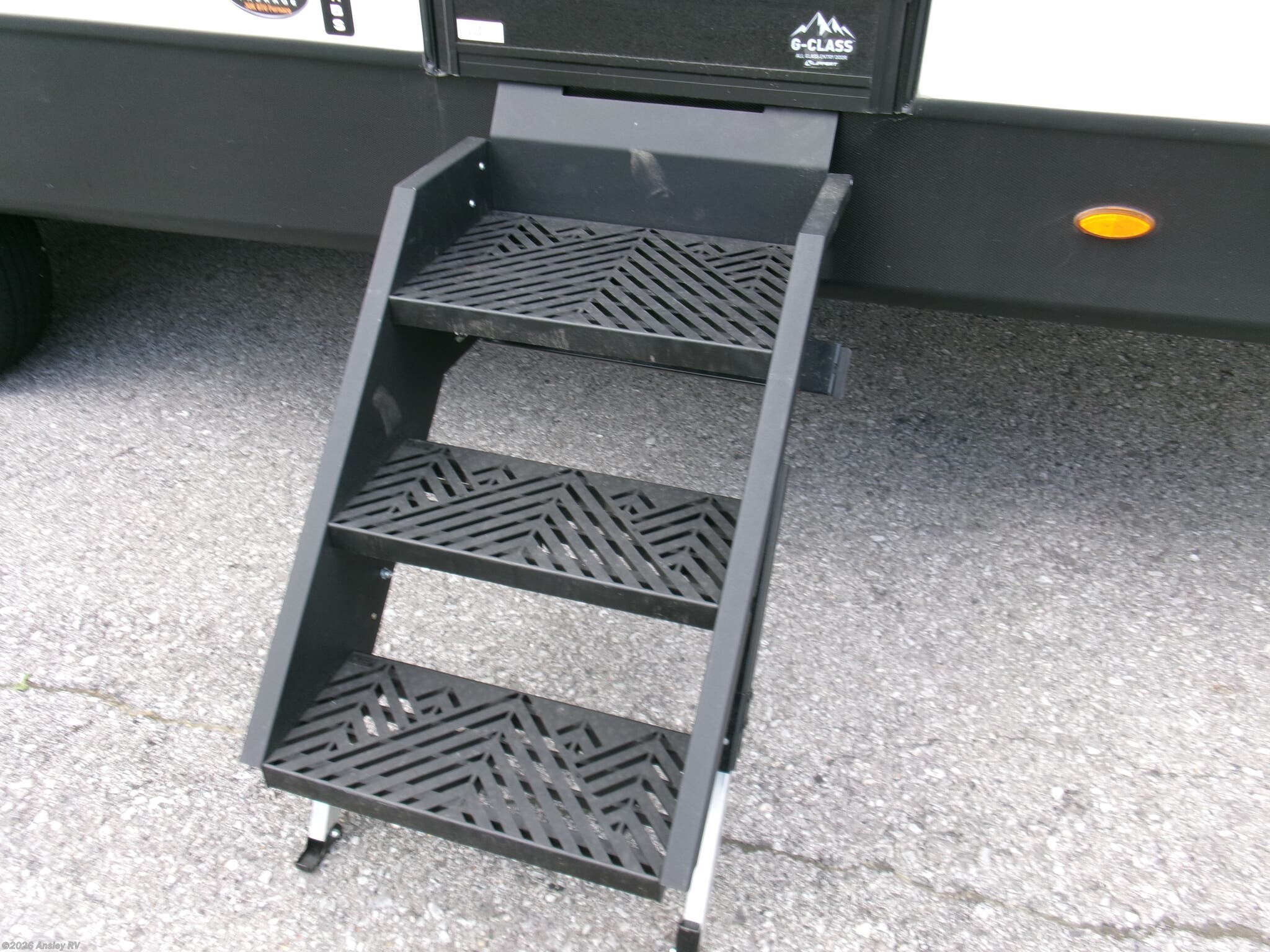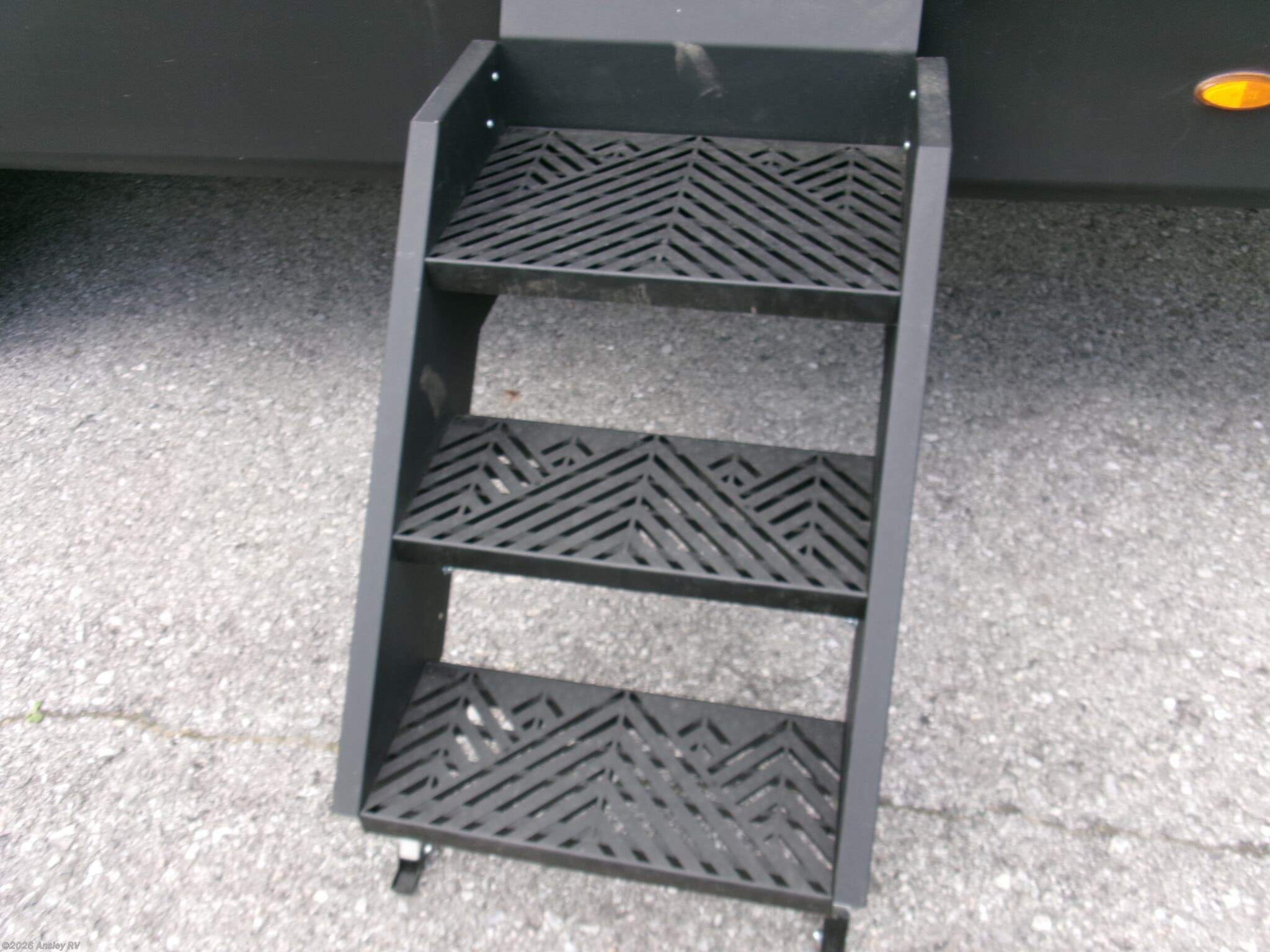 Awning, Exterior Speakers, External Shower, Hitch, Ladder, Leveling Jacks, Outside Kitchen, Power Roof Vent, Skylight, Slideout, Spare Tire Kit -