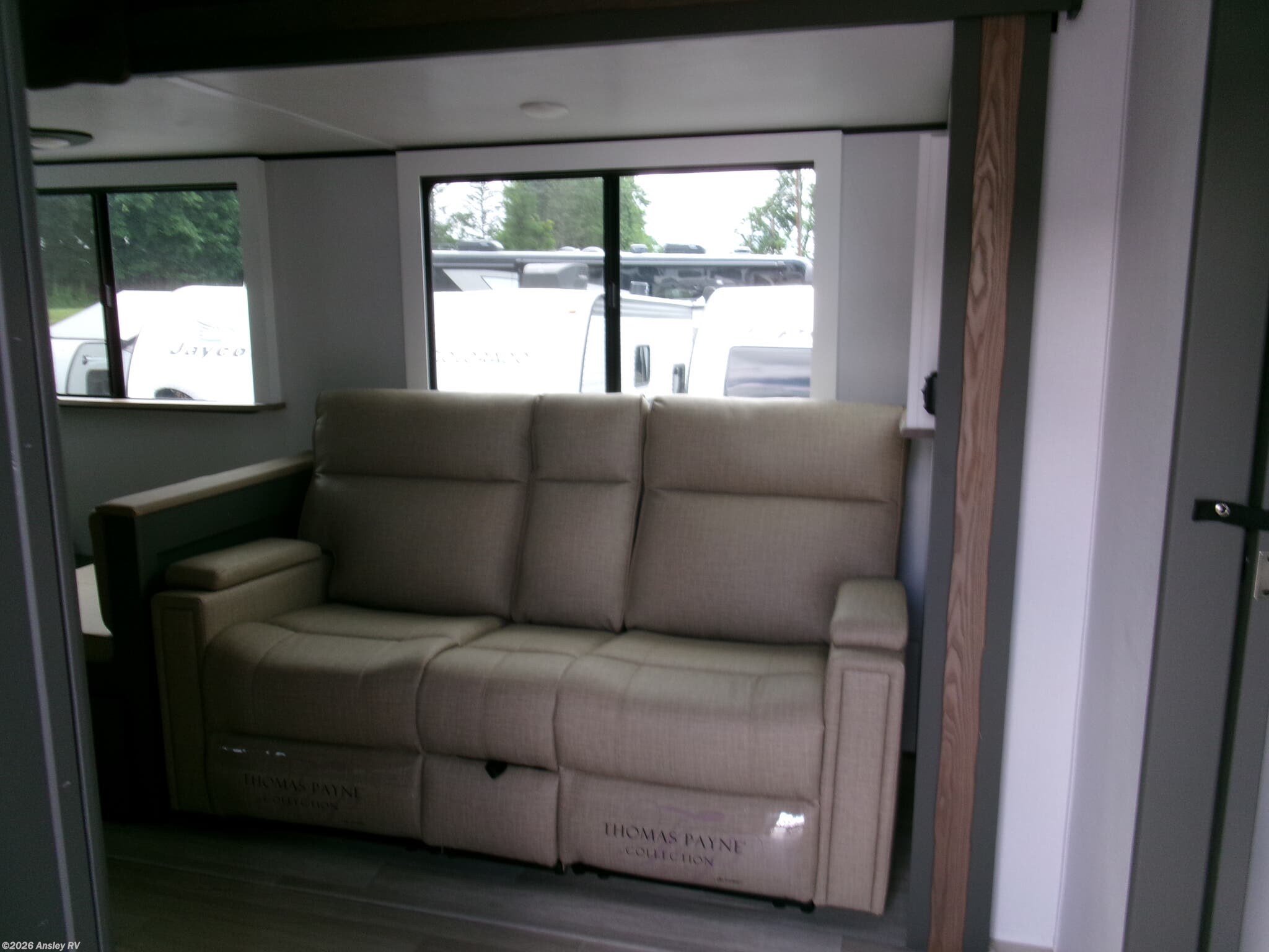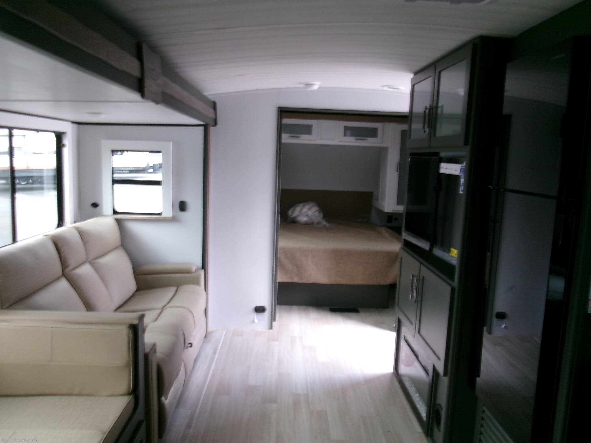Tranquil Timber Decor, White Exterior, Upgraded Equipment Package, 50 AMP Service with 2nd A/C Prep, Refrigerator - 12V - 10 cf, 15K A/C, Theater Seating