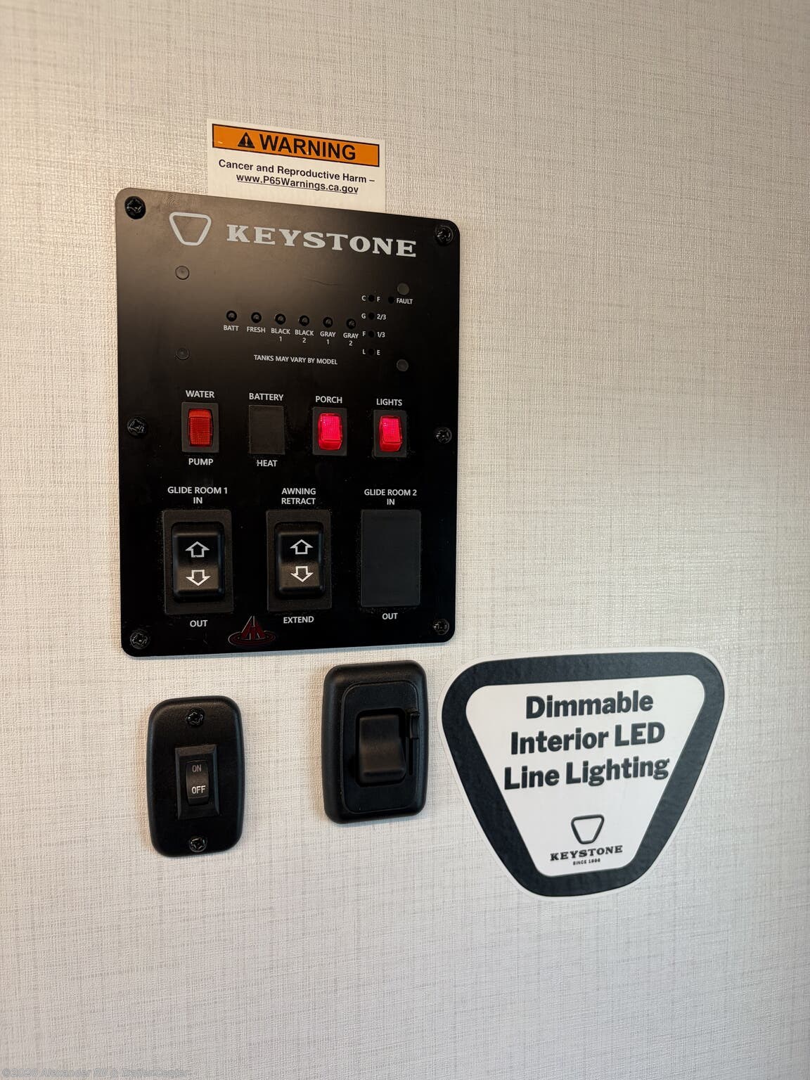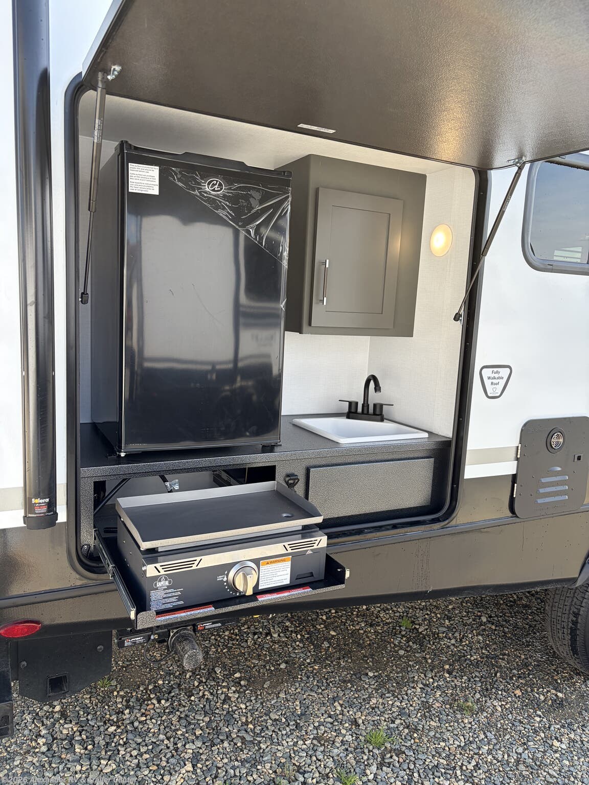 Alloy Wheels, Aluminum Entrance Steps, Black Tank Flush, Detachable Power Cord, Diamond Shield Paint Protection Film, Enclosed Underbelly, Exterior Refrigerator, Exterior Speakers, External Shower, Fiberglass Sidewalls, Griddle, Heated Underbelly, Hitch, Outside Kitchen, Pass Thru Storage, Power Awning, Power Hitch Jack, Power Stabilizer Jacks, Roof Vent, Skylight, Slam Latch Baggage Doors, Slideout, Spare Tire Kit, Upgraded Insulation Package -