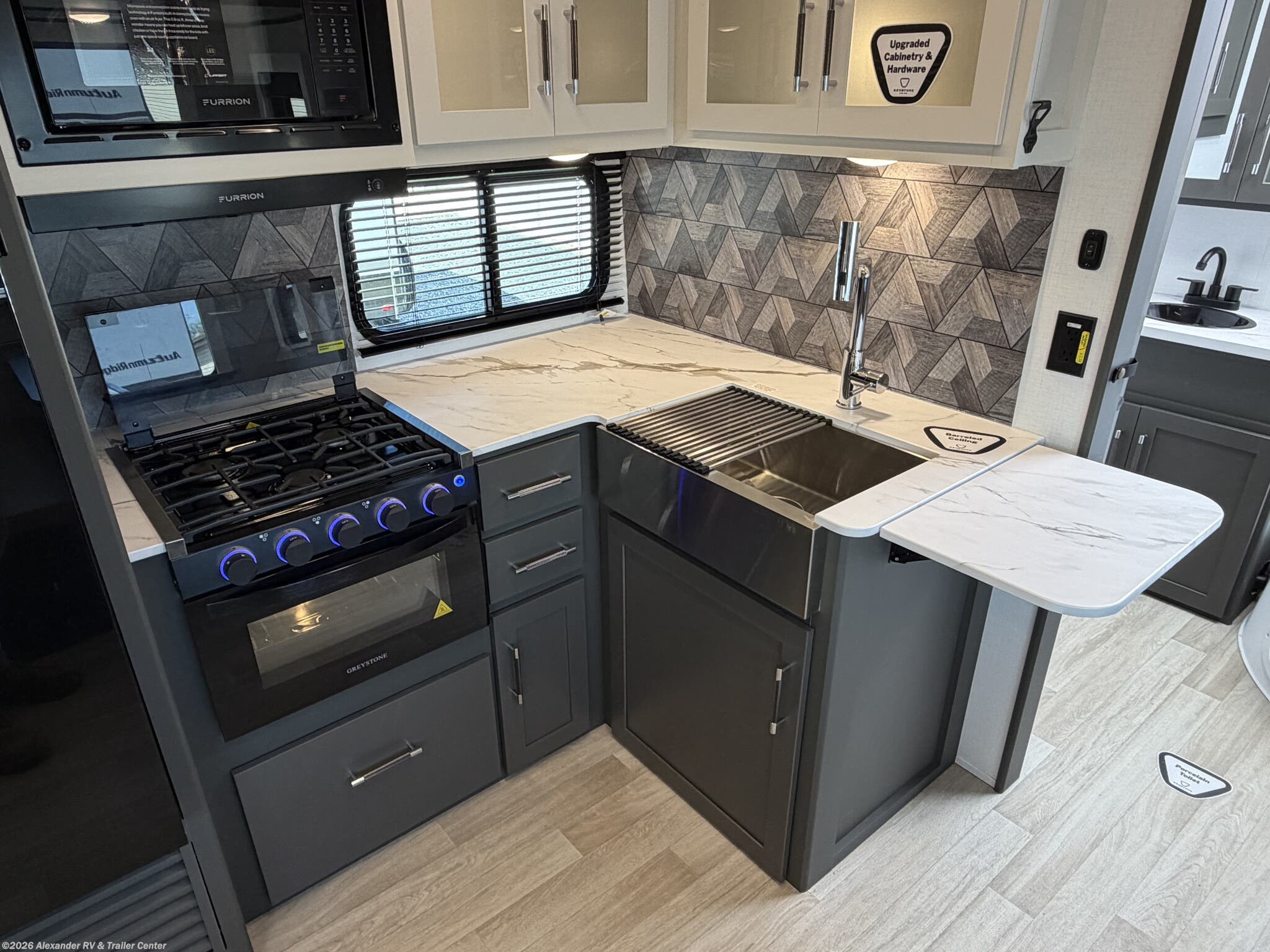 Convection Microwave, Furnace, Oven, Refrigerator (12V), Tankless Demand Gas Water Heater -