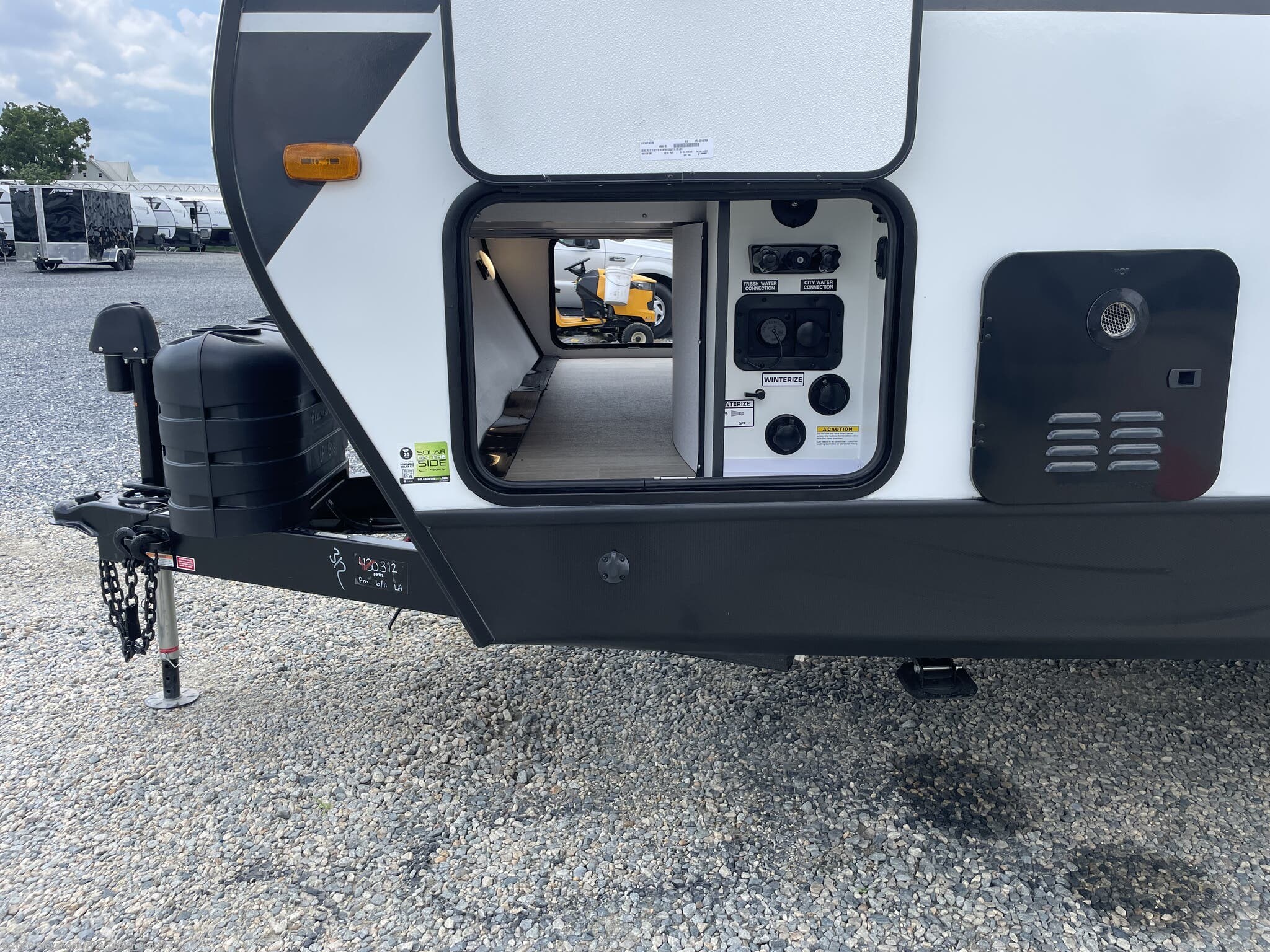 Aluminum Entrance Steps, Black Tank Flush, Detachable Power Cord, Enclosed Underbelly, Exterior Speakers, External Shower, Fiberglass Sidewalls, Heated Underbelly, Hitch, Pass Thru Storage, Power Awning, Power Hitch Jack, Power Roof Vent, Power Stabilizer Jacks, Skylight, Slam Latch Baggage Doors, Slideout, Spare Tire Kit, Upgraded Insulation Package -
