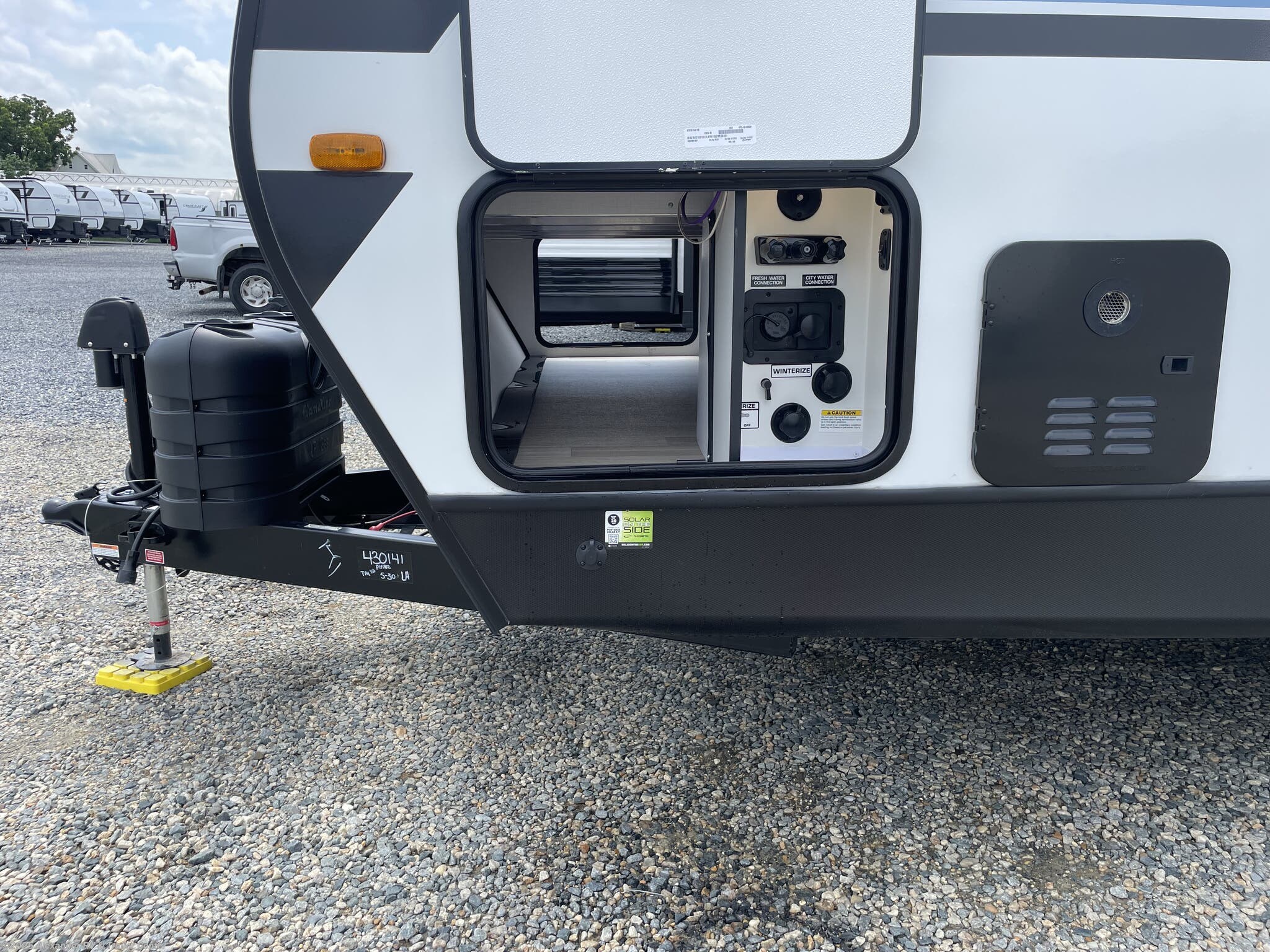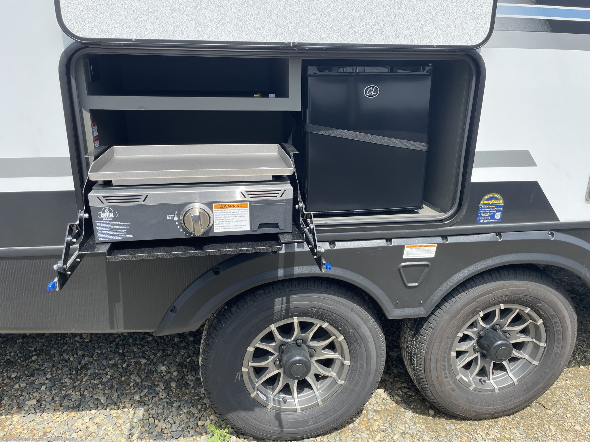 Alloy Wheels, Aluminum Entrance Steps, Black Tank Flush, Detachable Power Cord, Diamond Shield Paint Protection Film, Enclosed Underbelly, Exterior Speakers, External Shower, Fiberglass Sidewalls, Heated Underbelly, Hitch, Outside Kitchen, Pass Thru Storage, Power Awning, Power Hitch Jack, Power Roof Vent, Power Stabilizer Jacks, Screen Door, Skylight, Slam Latch Baggage Doors, Slideout, Spare Tire Kit, Upgraded Insulation Package -