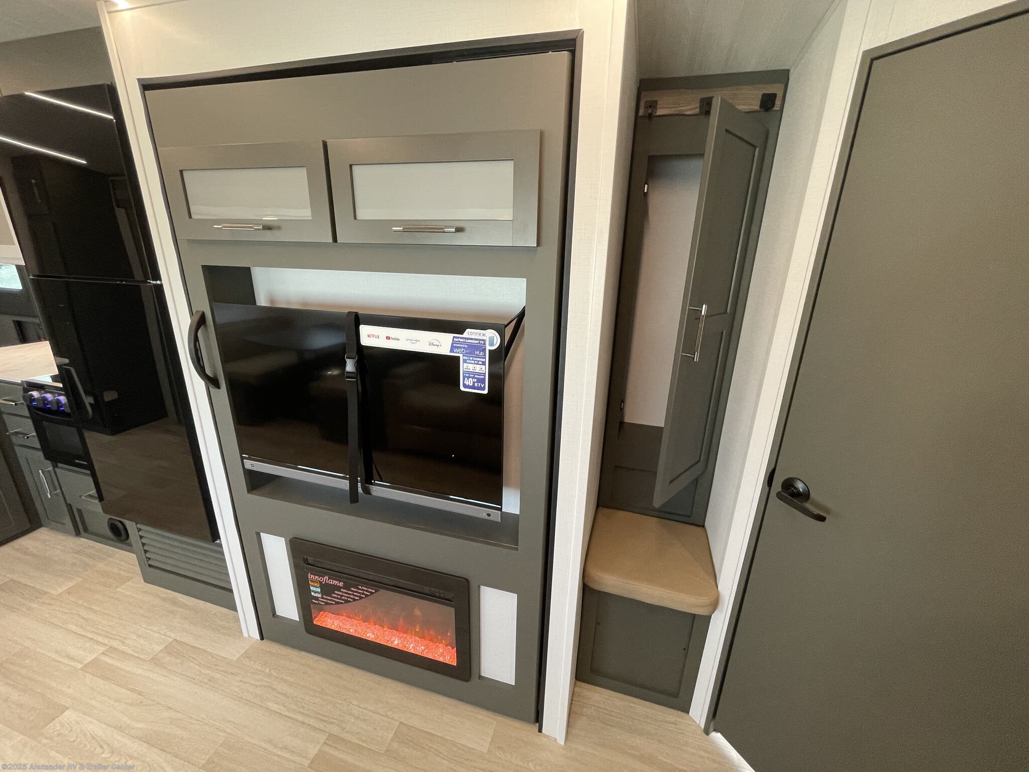 Booth Dinette, Bunk Beds, Fireplace, Medicine Cabinet, Pantry, Queen Bed, Roof Vents, Shower, Toilet -