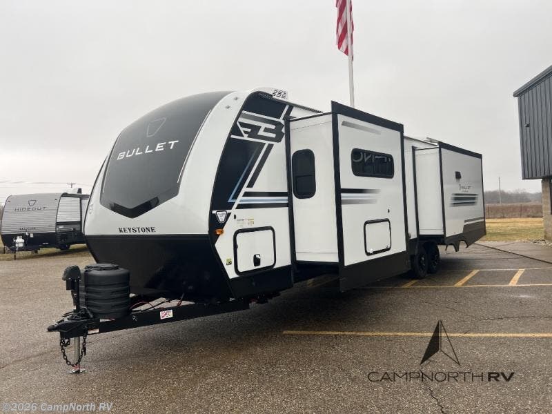 Searching for a 2026 Keystone Bullet Premium 310RES for sale in Michigan? CampNorth RV in Southwest Michigan is your lightweight rear living travel trailer dealer located on US 131 between Schoolcraft and Grand Rapids, serving West Michigan and buyers nationwide.