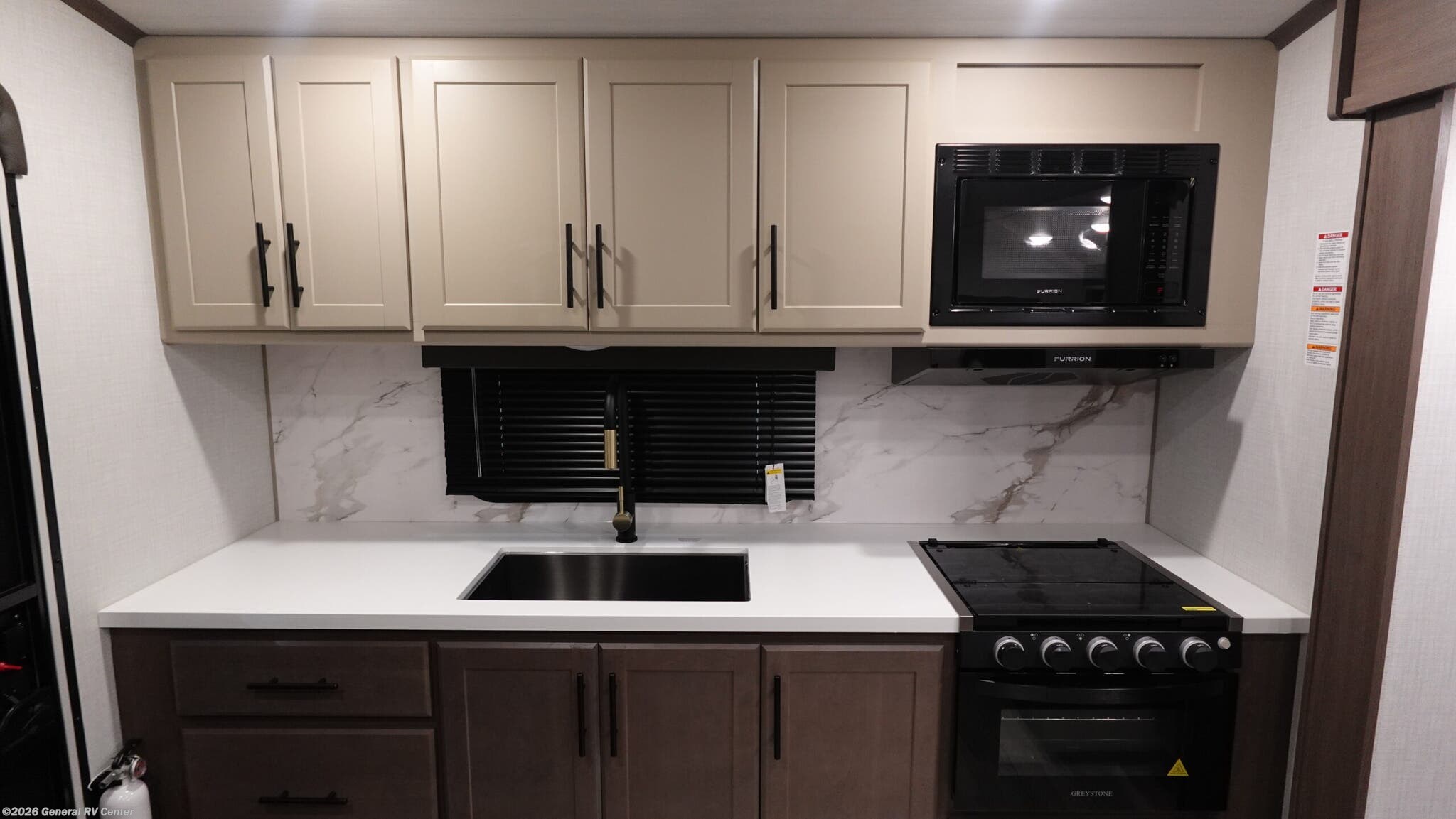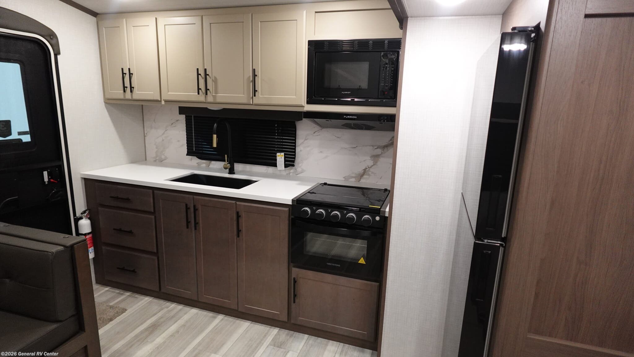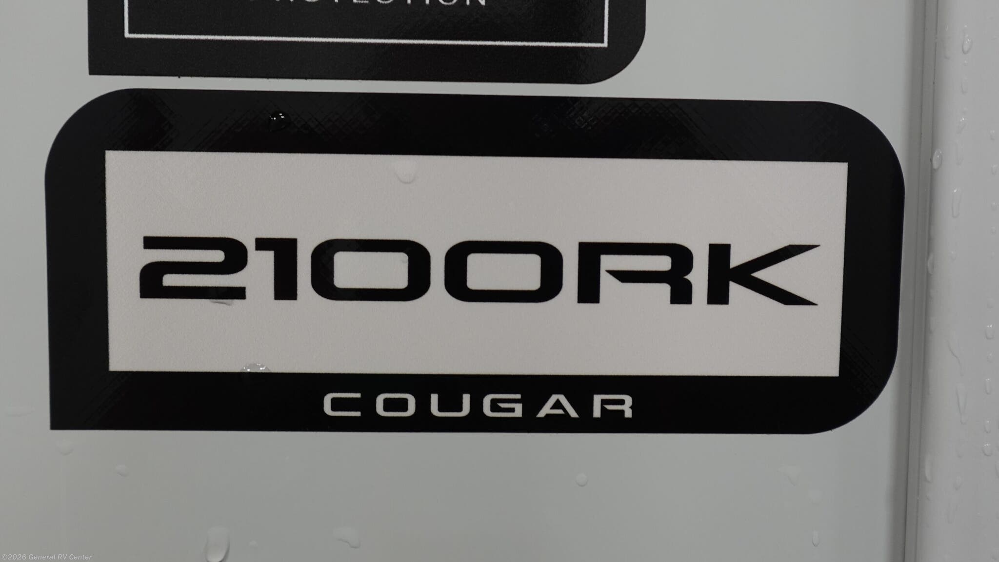 Experience the perfect blend of comfort and adventure with the 2026 Keystone Cougar Sport 2100RK. This travel trailer is thoughtfully designed to cater to your every need while on the road. At 26.25 feet in length, it offers a spacious and inviting interior that comfortably sleeps up to six people. The rear kitchen layout is a chef's delight, featuring a three-burner cooktop and a full-size electric refrigerator, ensuring you have all the amenities needed to whip up delicious meals. The center living area, complete with a tri-fold sleeper sofa and a convertible dinette, provides ample space for relaxation and entertainment. Retreat to the cozy front bedroom where a queen bed awaits, offering a restful night's sleep after a day of exploration. The center bath is equipped with a practical shower, ensuring convenience and privacy. With a 17-foot powered retractable awning, you can enjoy outdoor living, whether you're sipping your morning coffee or watching the sunset. The Cougar Sport 2100RK also boasts impressive storage solutions, including unobstructed pass-through storage, allowing you to bring along all your essentials for the journey ahead. For more information or to see this model in person, visit your nearest General RV dealership. Our team is ready to assist you in finding the perfect RV for your adventures.