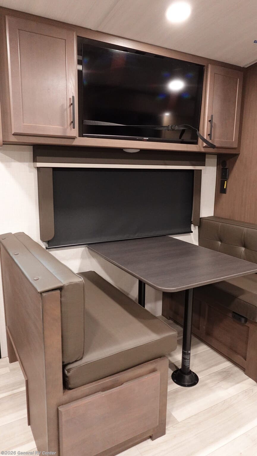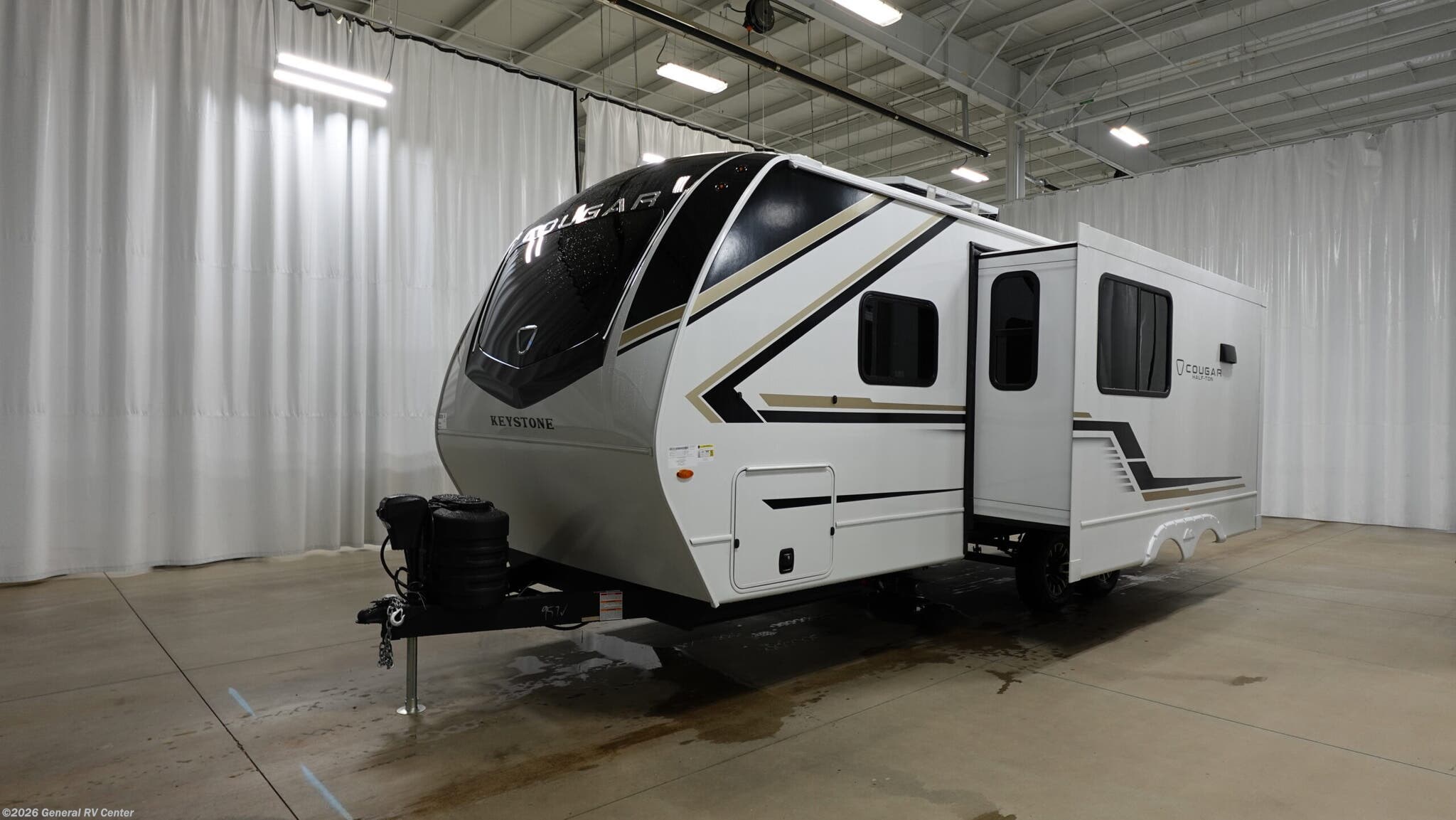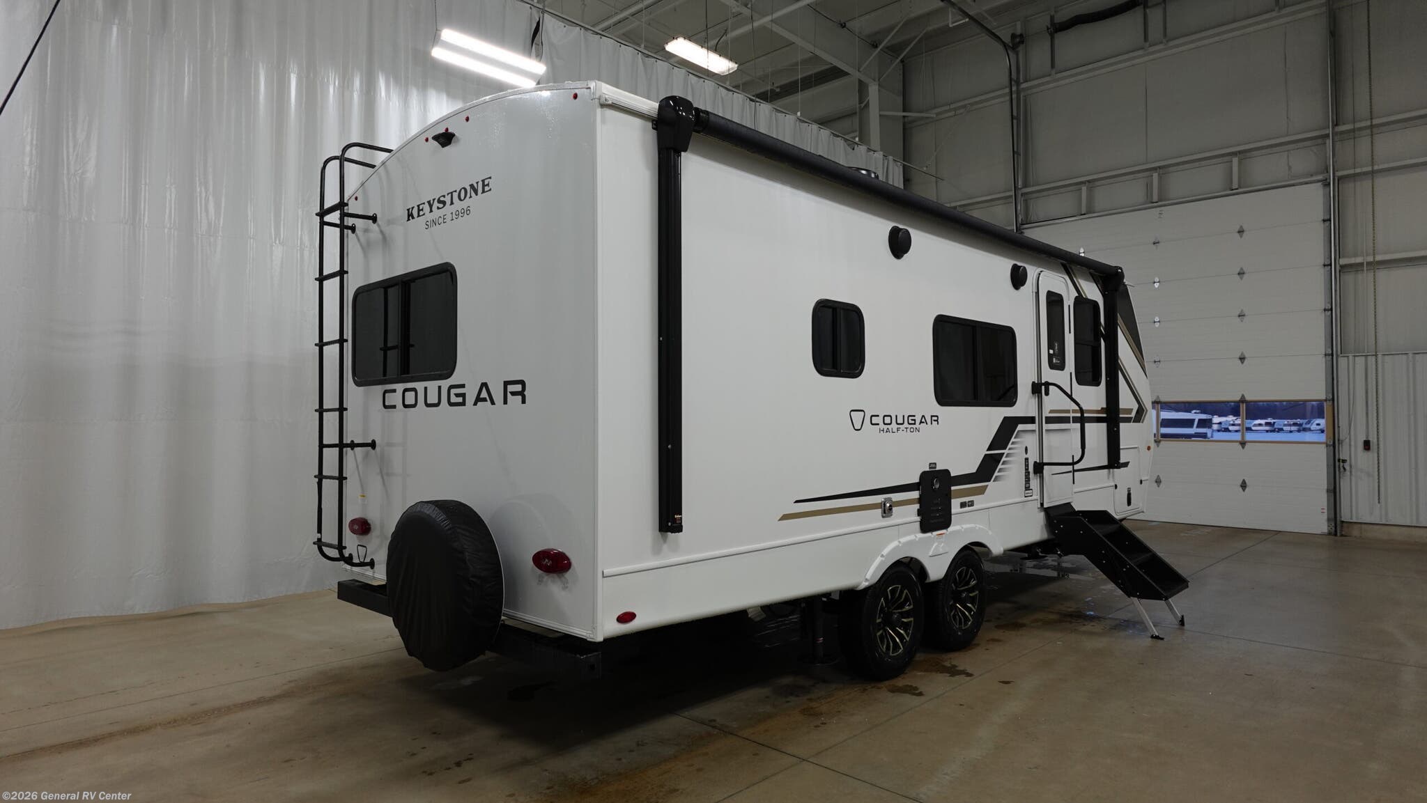 Introducing the 2026 Keystone Cougar Half-Ton 22MLS, where modern design meets ultimate comfort. This RV invites you to explore the open road with the perfect blend of luxury and practicality. Its impressive 26.83-foot length houses a spacious interior, featuring a cozy rear kitchen equipped with a full-size electric refrigerator and a three-burner cooktop. The center living area offers theater seating and a booth dinette, perfect for enjoying meals or relaxing after a day of adventure. The atmosphere is enhanced by a charming fireplace, providing warmth and ambiance on cooler nights. Retreat to the inviting king bed, where restful nights await, while the convertible sleeping space accommodates additional guests. The thoughtful layout includes a rear bath, ensuring privacy and convenience. With an 18-foot powered retractable awning, outdoor enjoyment is just a step away, whether you're savoring your morning coffee or watching the sunset. The Cougar Half-Ton 22MLS is designed for those who seek both adventure and comfort, making it the ideal companion for your travels. For more details, visit your nearest General RV dealership today!