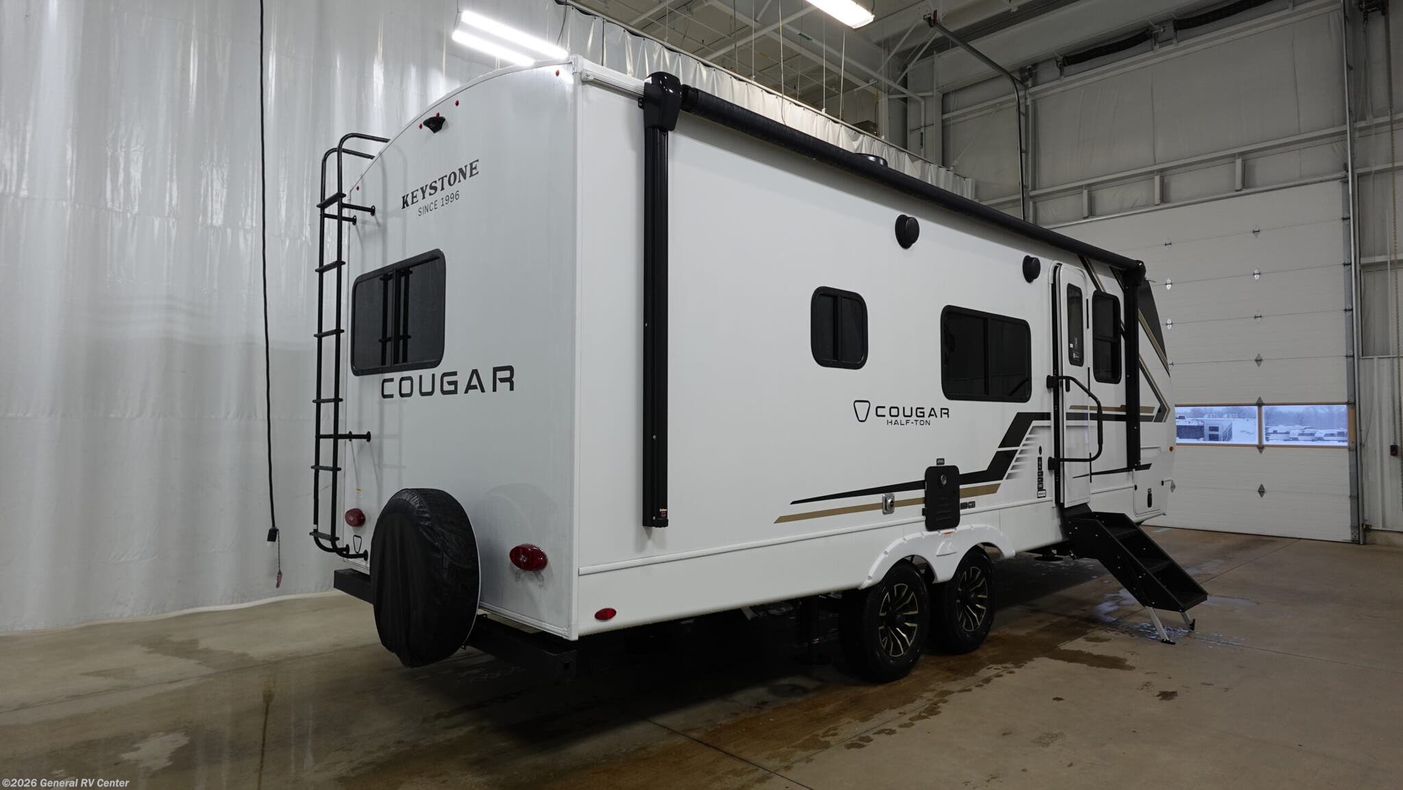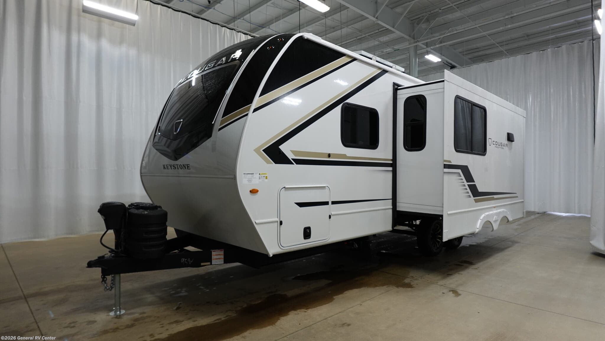 Introducing the 2026 Keystone Cougar Half-Ton 22MLS, where modern design meets ultimate comfort. This RV invites you to explore the open road with the perfect blend of luxury and practicality. Its impressive 26.83-foot length houses a spacious interior, featuring a cozy rear kitchen equipped with a full-size electric refrigerator and a three-burner cooktop. The center living area offers theater seating and a booth dinette, perfect for enjoying meals or relaxing after a day of adventure. The atmosphere is enhanced by a charming fireplace, providing warmth and ambiance on cooler nights. Retreat to the inviting king bed, where restful nights await, while the convertible sleeping space accommodates additional guests. The thoughtful layout includes a rear bath, ensuring privacy and convenience. With an 18-foot powered retractable awning, outdoor enjoyment is just a step away, whether you're savoring your morning coffee or watching the sunset. The Cougar Half-Ton 22MLS is designed for those who seek both adventure and comfort, making it the ideal companion for your travels. For more details, visit your nearest General RV dealership today!