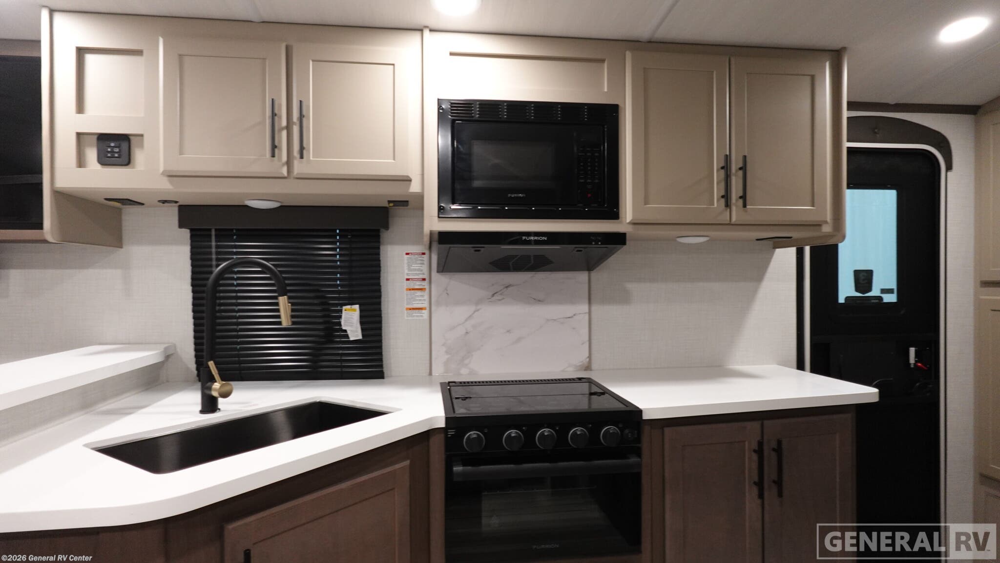 Experience the perfect blend of style and functionality with the 2025 Keystone Cougar Half-Ton 22RBS. This RV is designed for those who crave adventure without sacrificing comfort. At just under 26 feet in length, it offers a spacious and inviting interior that can sleep up to four people. The front bedroom features a luxurious king-sized bed, providing a restful retreat after a day of exploration. The convertible dinette offers additional sleeping space, making it ideal for family or friends. The center kitchen is well-equipped with a three-burner cooktop and a full-size electric refrigerator, ensuring you have everything you need to whip up delicious meals on the road. The rear bath boasts a convenient radius shower, offering a touch of home with its practical design. Outside, the 16-foot powered retractable awning creates a perfect outdoor living space, allowing you to enjoy the fresh air in comfort. With ample storage throughout, including a handy closet/pantry, this RV ensures you can bring along all your essentials for the journey. Built with quality and convenience in mind, the Cougar Half-Ton 22RBS is ready to accompany you on countless adventures. Its thoughtful design and premium features make it a standout choice for any travel enthusiast. For more details or to see it in person, visit your nearest General RV dealership.