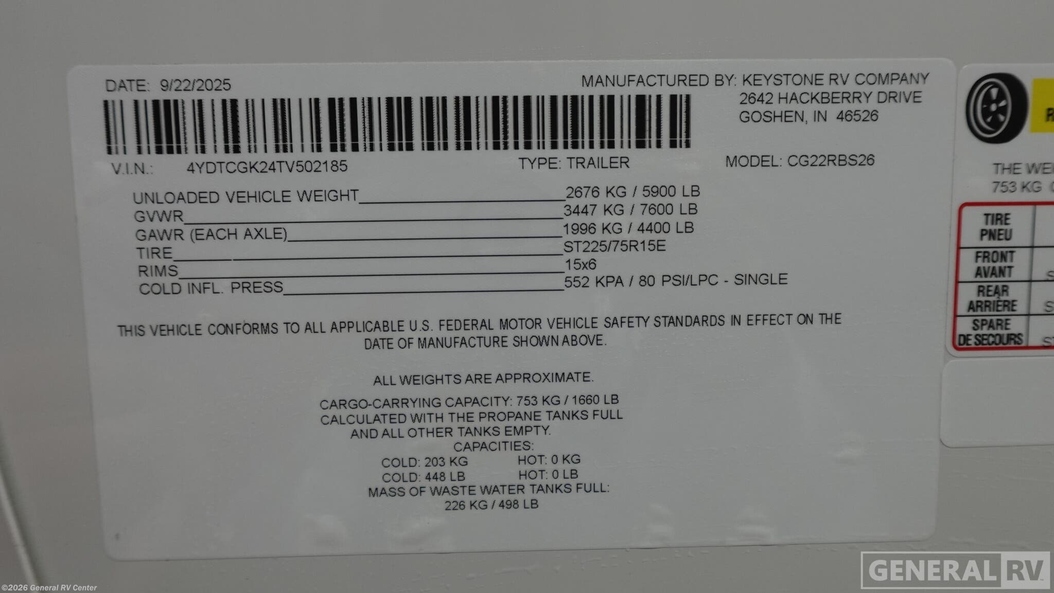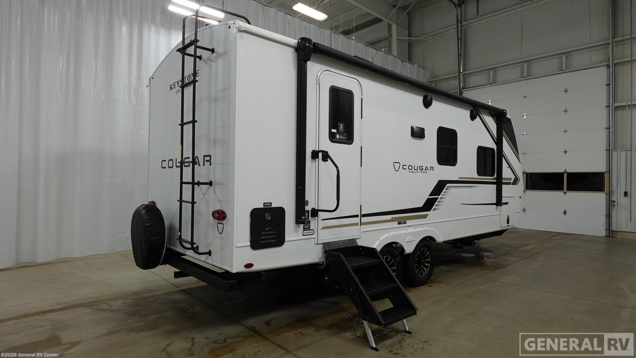 Experience the perfect blend of style and functionality with the 2025 Keystone Cougar Half-Ton 22RBS. This RV is designed for those who crave adventure without sacrificing comfort. At just under 26 feet in length, it offers a spacious and inviting interior that can sleep up to four people. The front bedroom features a luxurious king-sized bed, providing a restful retreat after a day of exploration. The convertible dinette offers additional sleeping space, making it ideal for family or friends. The center kitchen is well-equipped with a three-burner cooktop and a full-size electric refrigerator, ensuring you have everything you need to whip up delicious meals on the road. The rear bath boasts a convenient radius shower, offering a touch of home with its practical design. Outside, the 16-foot powered retractable awning creates a perfect outdoor living space, allowing you to enjoy the fresh air in comfort. With ample storage throughout, including a handy closet/pantry, this RV ensures you can bring along all your essentials for the journey. Built with quality and convenience in mind, the Cougar Half-Ton 22RBS is ready to accompany you on countless adventures. Its thoughtful design and premium features make it a standout choice for any travel enthusiast. For more details or to see it in person, visit your nearest General RV dealership.