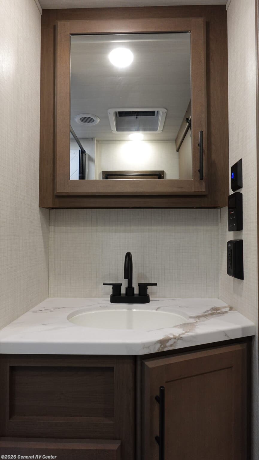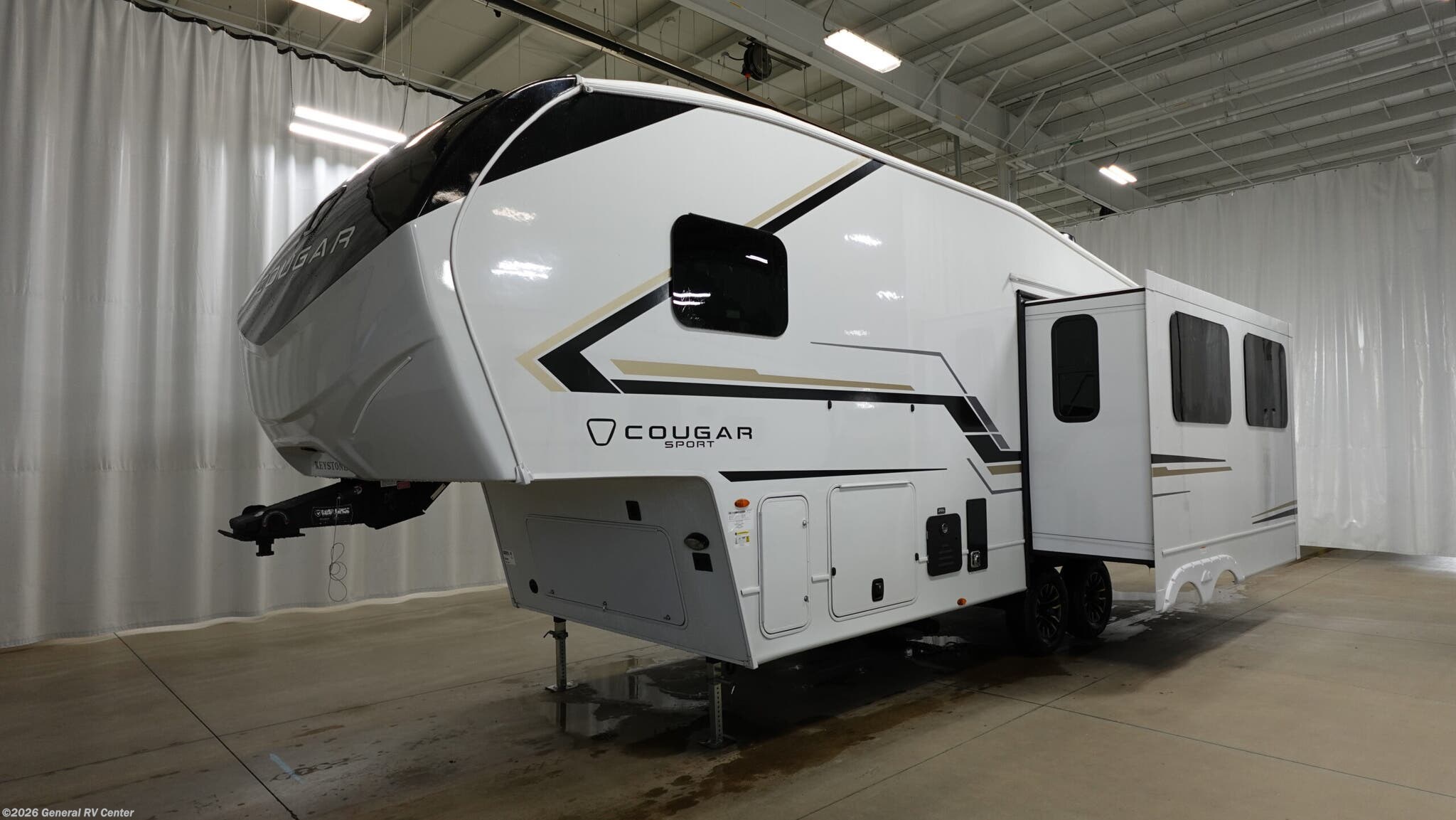 Experience the perfect blend of comfort and adventure with the 2026 Keystone Cougar Sport 2400RE. This thoughtfully designed RV invites you to explore the open road without sacrificing the comforts of home. With a length of just over 29 feet, it offers a spacious retreat featuring a cozy front bedroom with a queen bed and ample wardrobe space, ensuring restful nights after a day of exploration. The Cougar Sport's center kitchen is a culinary delight, equipped with a full-size electric refrigerator and a three-burner cooktop, perfect for whipping up your favorite meals. Enjoy the convenience of a 16-foot powered retractable awning, providing the ideal outdoor space for dining or simply soaking in the scenery. With a generous fresh water capacity of 54 gallons and smart storage solutions, this RV is ready for extended journeys. Whether you're embarking on a weekend getaway or a cross-country adventure, the Cougar Sport 2400RE promises a memorable and comfortable travel experience. For more information, visit your nearest General RV Dealership.