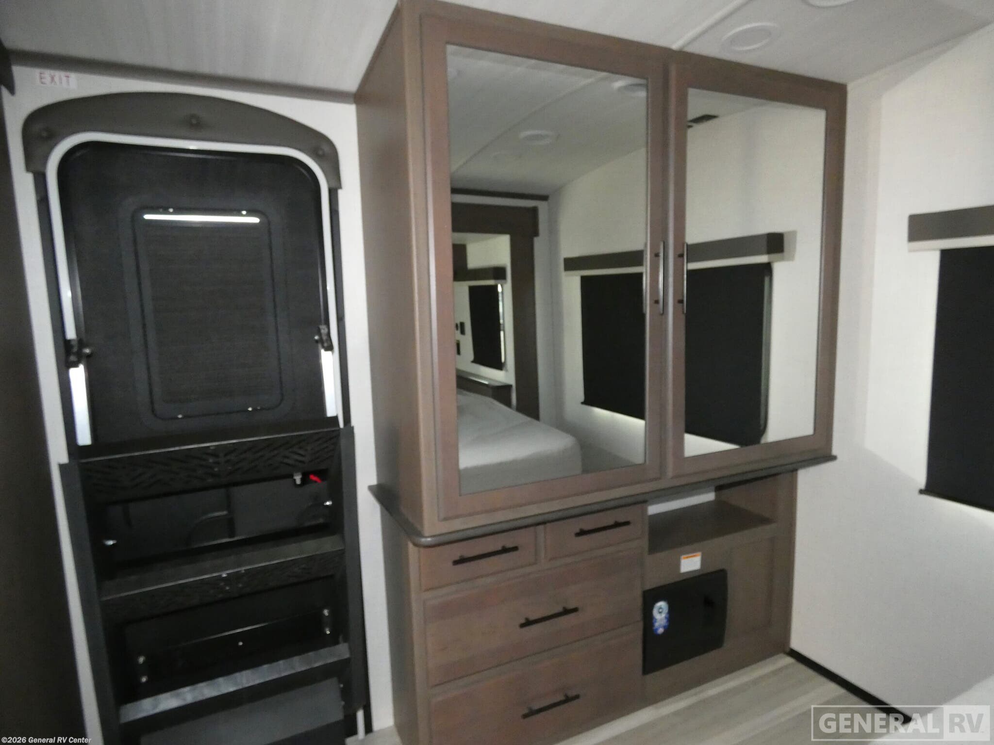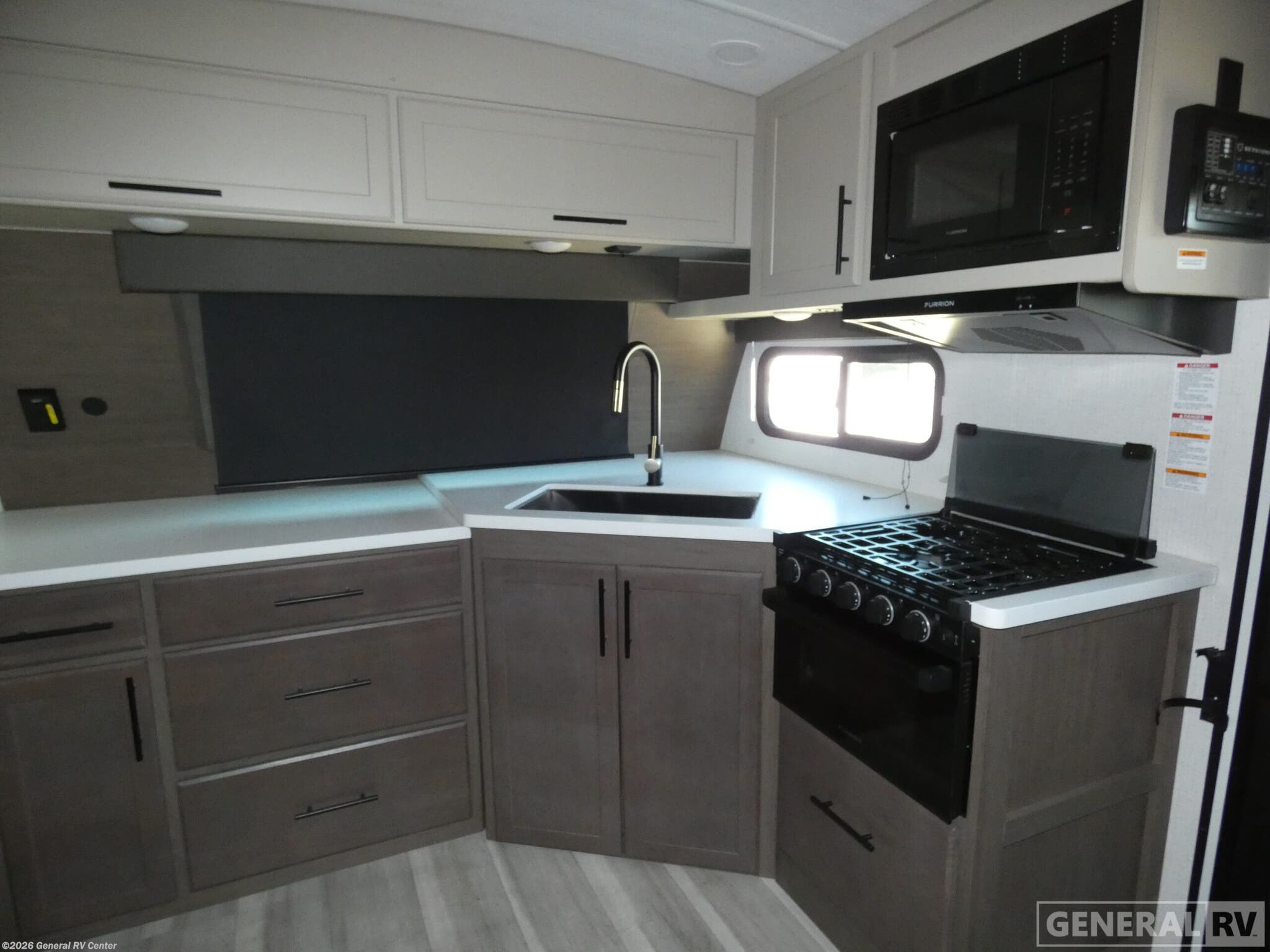 Experience the perfect blend of comfort and adventure with the 2026 Keystone Cougar Half-Ton 25FKD. This thoughtfully designed RV invites you to indulge in the spacious front kitchen, where culinary dreams come to life with a three-burner cooktop and a full-size electric refrigerator. The center living area, featuring a tri-fold sleeper sofa and booth dinette, offers a welcoming space for relaxation and entertainment, enhanced by a swiveling entertainment center for optimal viewing. Retreat to the rear bedroom, where a cozy queen bed awaits, with the option to upgrade to a king for added luxury. Ample storage solutions, including wardrobes, dressers, and exterior compartments, ensure you have all the space you need for your travel essentials. Enjoy outdoor living under the expansive 20-foot powered retractable awning, perfect for sun-drenched afternoons or starlit evenings. With a robust cargo capacity and a dry weight of 7,040 lbs, the Cougar Half-Ton 25FKD is ready to accompany you on countless journeys. For more details, visit your nearest General RV dealership.