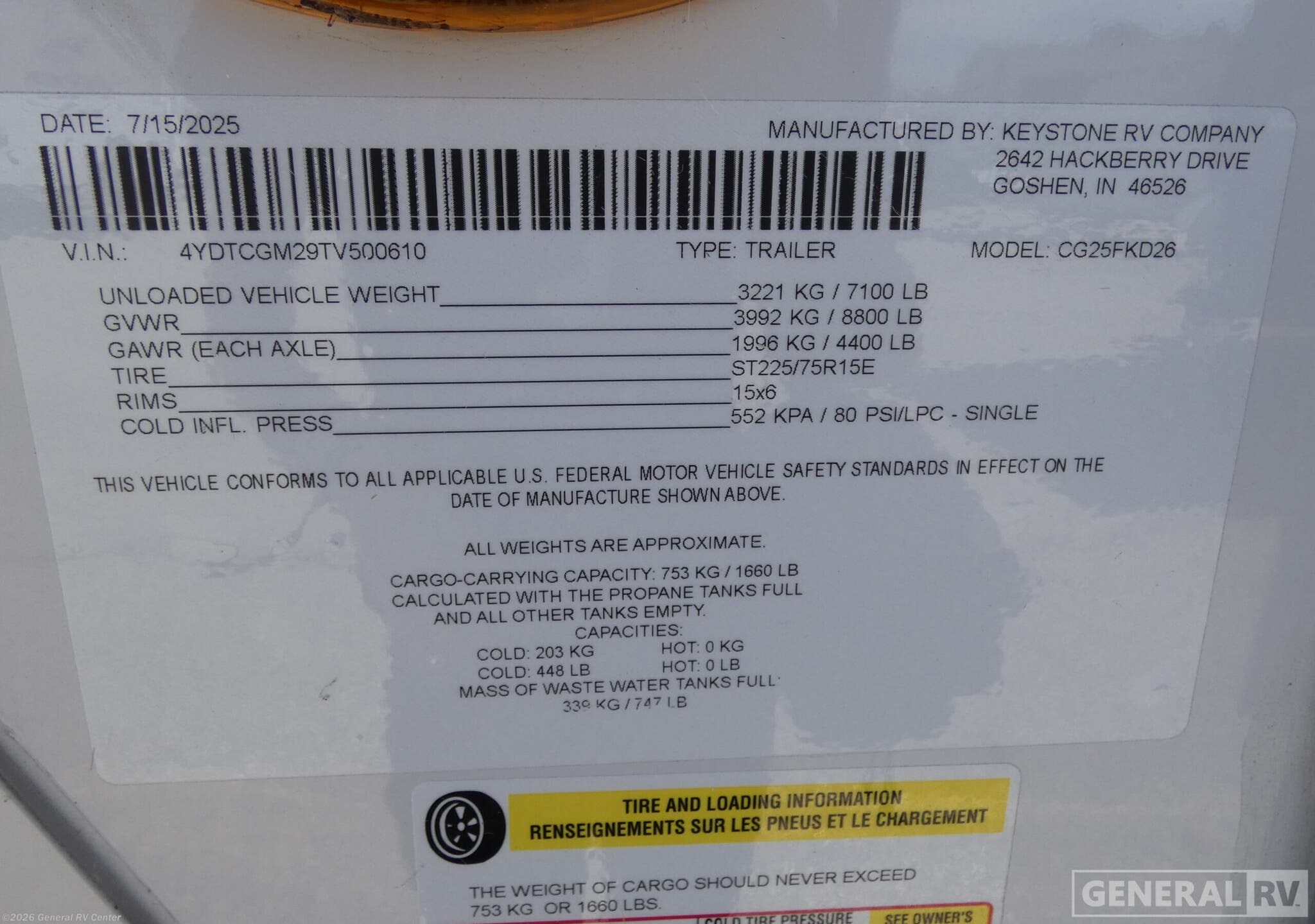 Request More Info on this 2026 Keystone Cougar 25FKD Offered for sale by General RV Center