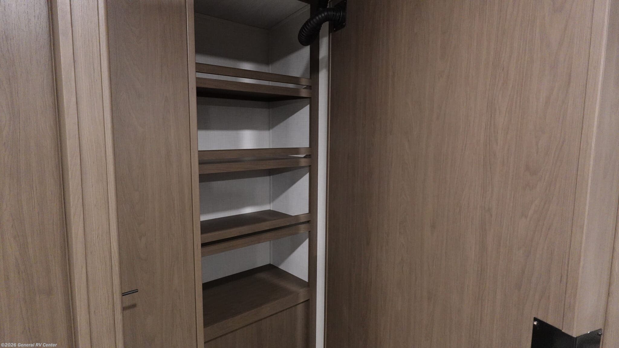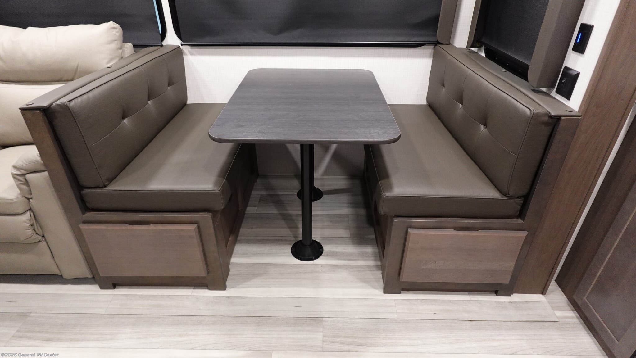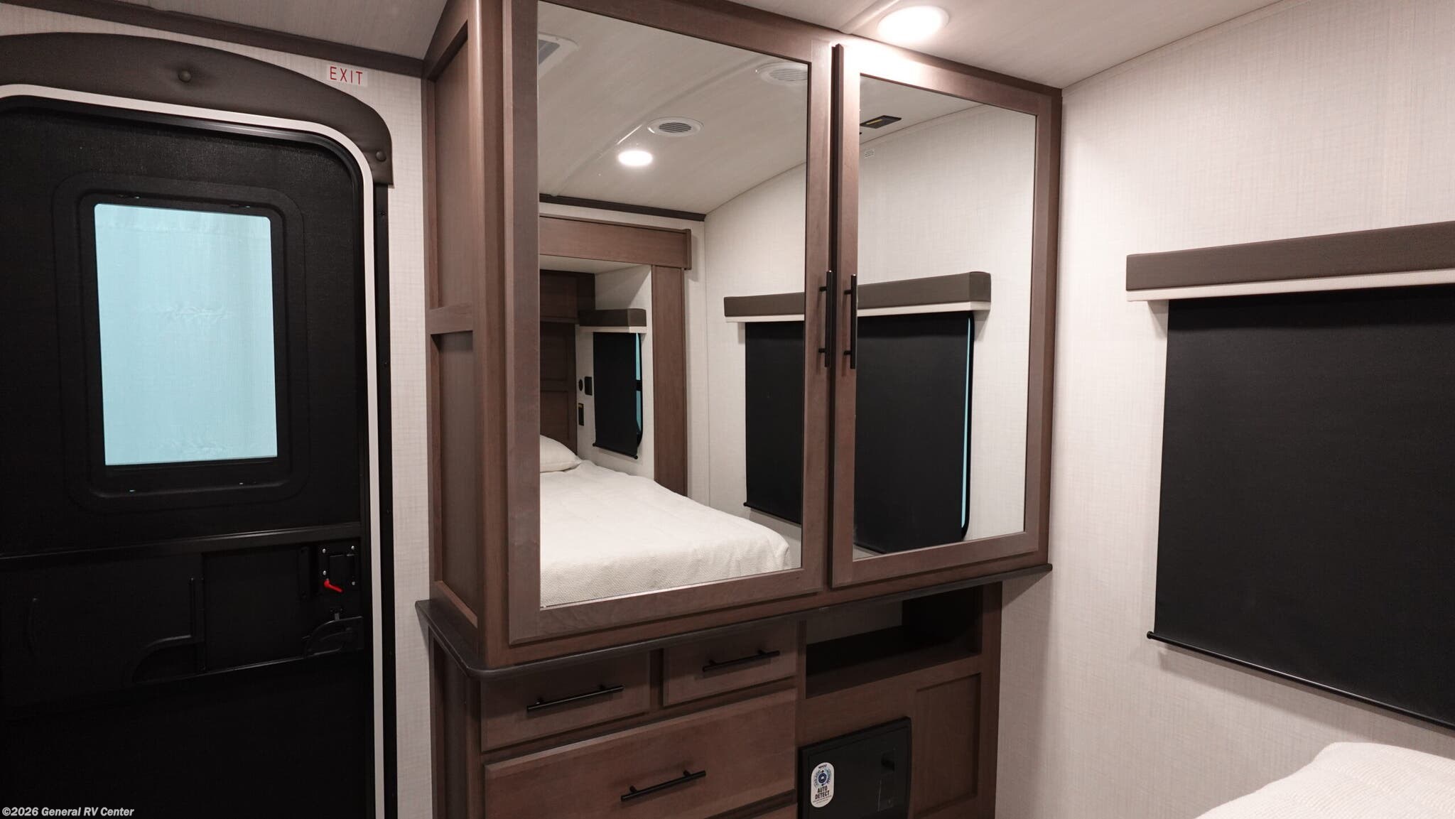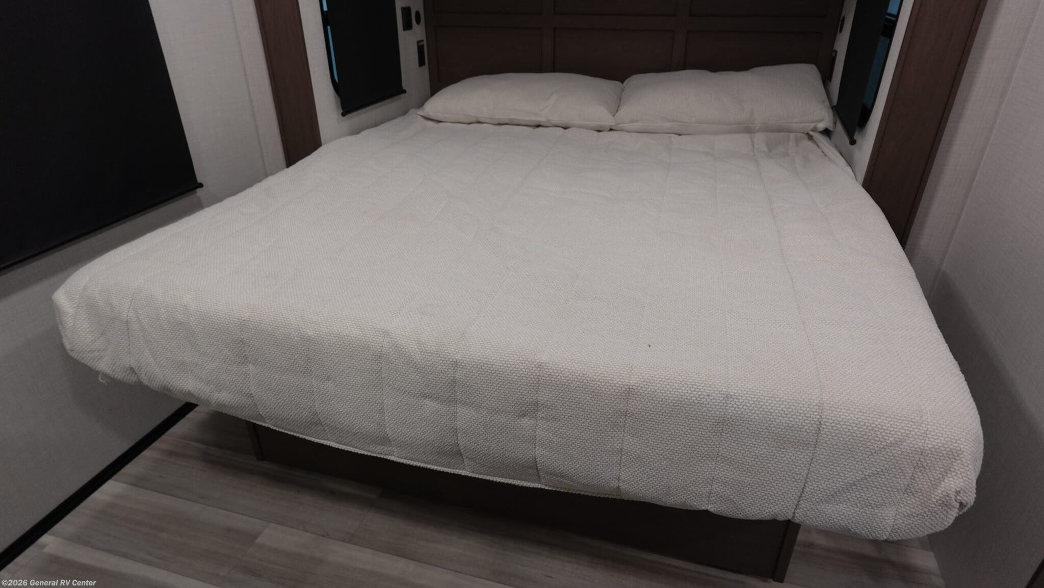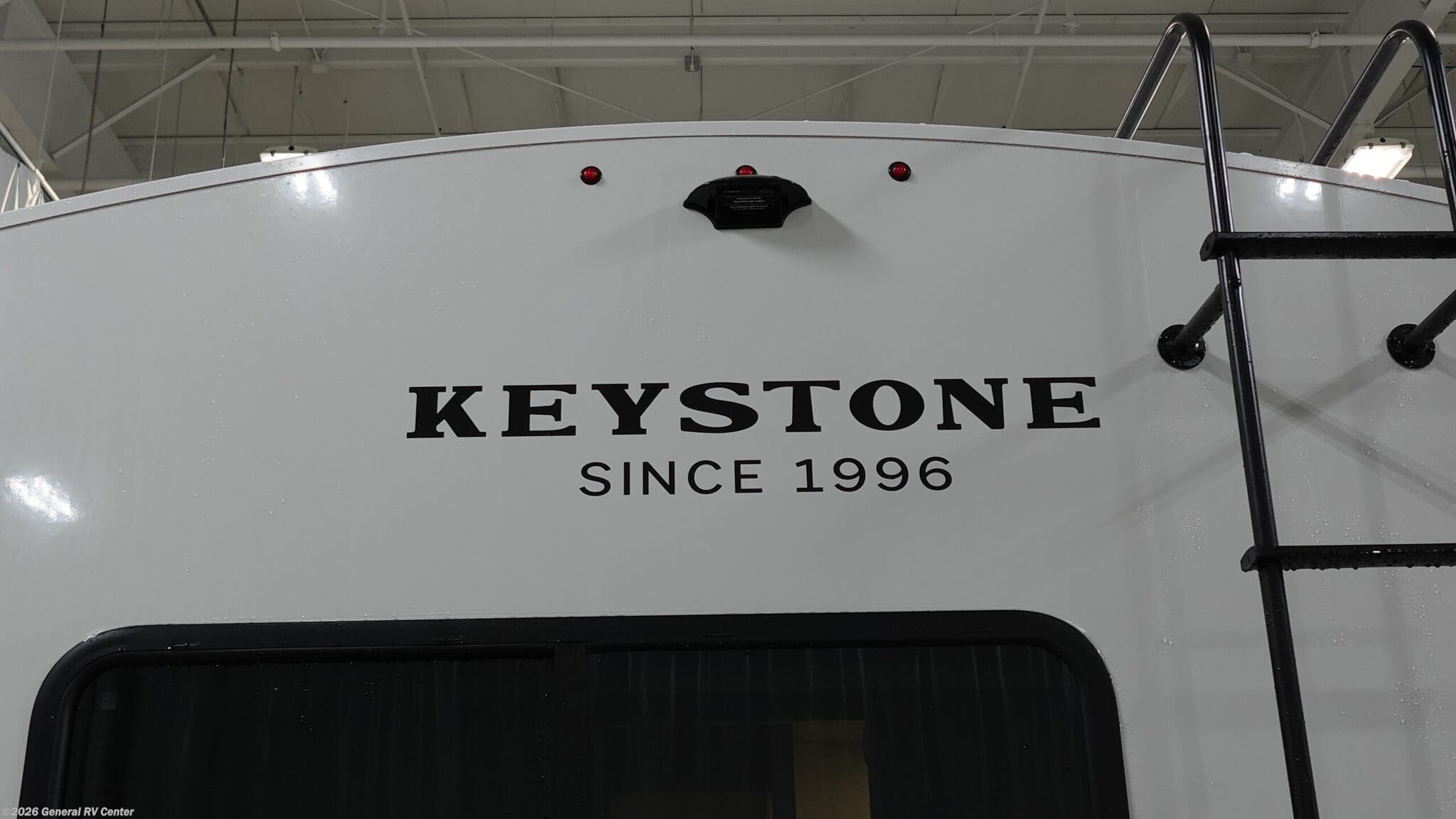 Experience the perfect blend of comfort and adventure with the 2026 Keystone Cougar Half-Ton 25FKD. This thoughtfully designed RV invites you to indulge in the spacious front kitchen, where culinary dreams come to life with a three-burner cooktop and a full-size electric refrigerator. The center living area, featuring a theater seat sofa and booth dinette, offers a welcoming space for relaxation and entertainment, enhanced by a swiveling entertainment center for optimal viewing. Retreat to the rear bedroom, where a cozy bed awaits. Ample storage solutions, including wardrobes, dressers, and exterior compartments, ensure you have all the space you need for your travel essentials. Enjoy outdoor living under the expansive 20-foot powered retractable awning, perfect for sun-drenched afternoons or starlit evenings. With a robust cargo capacity and a dry weight of 7,040 lbs, the Cougar Half-Ton 25FKD is ready to accompany you on countless journeys. For more details, visit your nearest General RV dealership.