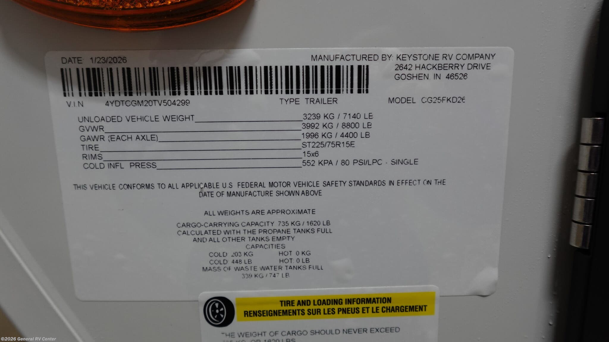 Request More Info on this 2026 Keystone Cougar 25FKD Offered for sale by General RV Center