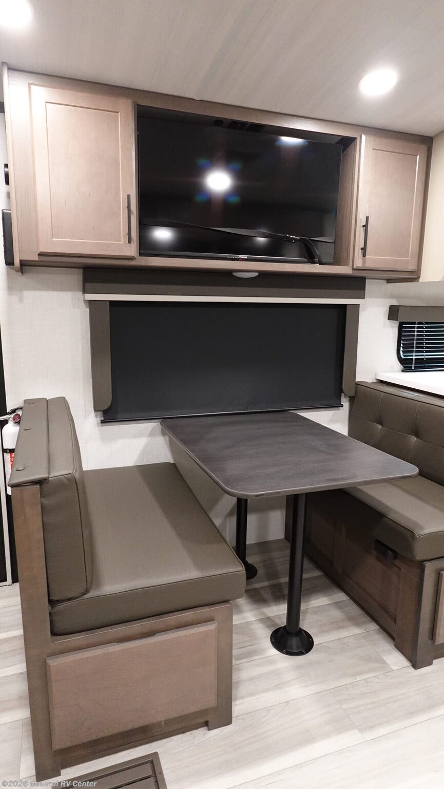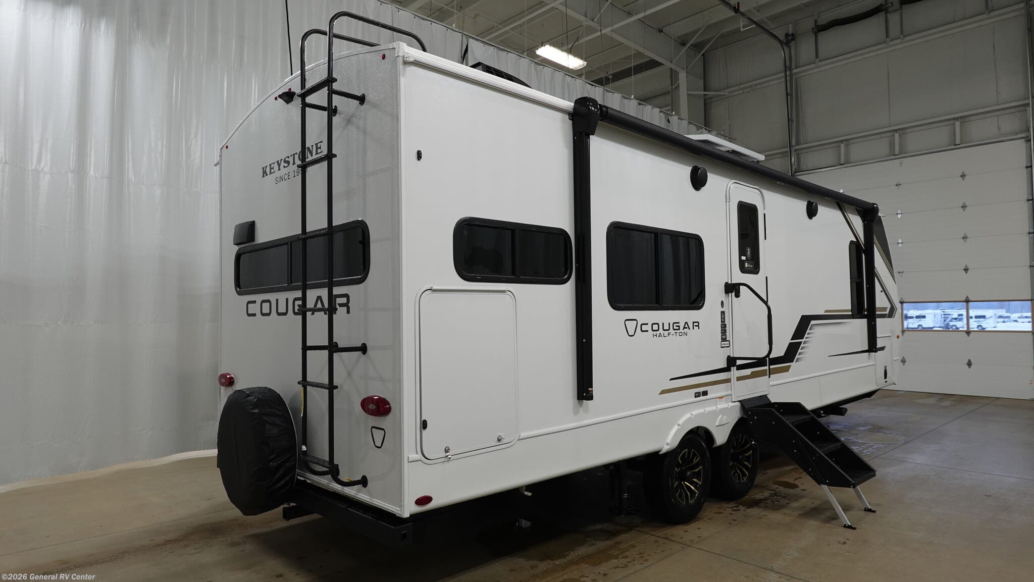 Experience the perfect blend of comfort and adventure with the 2026 Keystone Cougar Half-Ton 25MLE. This travel trailer invites you to explore the open road without sacrificing the comforts of home. With a spacious king bed and two convertible sleeping areas, it can accommodate up to six guests, making it ideal for families or entertaining friends. The rear kitchen layout is a chef's dream, featuring a full-size refrigerator and a three-burner cooktop, offering all the amenities you need to whip up a delicious meal. The center living area, complete with a tri-fold sleeper sofa and booth dinette, provides a cozy space to relax and unwind after a day of exploration. The Cougar 25MLE is designed with convenience in mind. The center bath, equipped with a plastic and glass shower, ensures you have all the essentials at your fingertips. An 18-foot powered retractable awning extends your living space to the outdoors, perfect for enjoying the scenic views or hosting a barbecue with the exterior kitchen. With ample storage throughout, including wardrobe and pantry space, you’ll have no trouble packing all your essentials. The solid step entry ensures easy access, while the automatic heater keeps you warm on chilly nights. Visit your nearest General RV dealership to see how this remarkable travel trailer can elevate your adventures.
