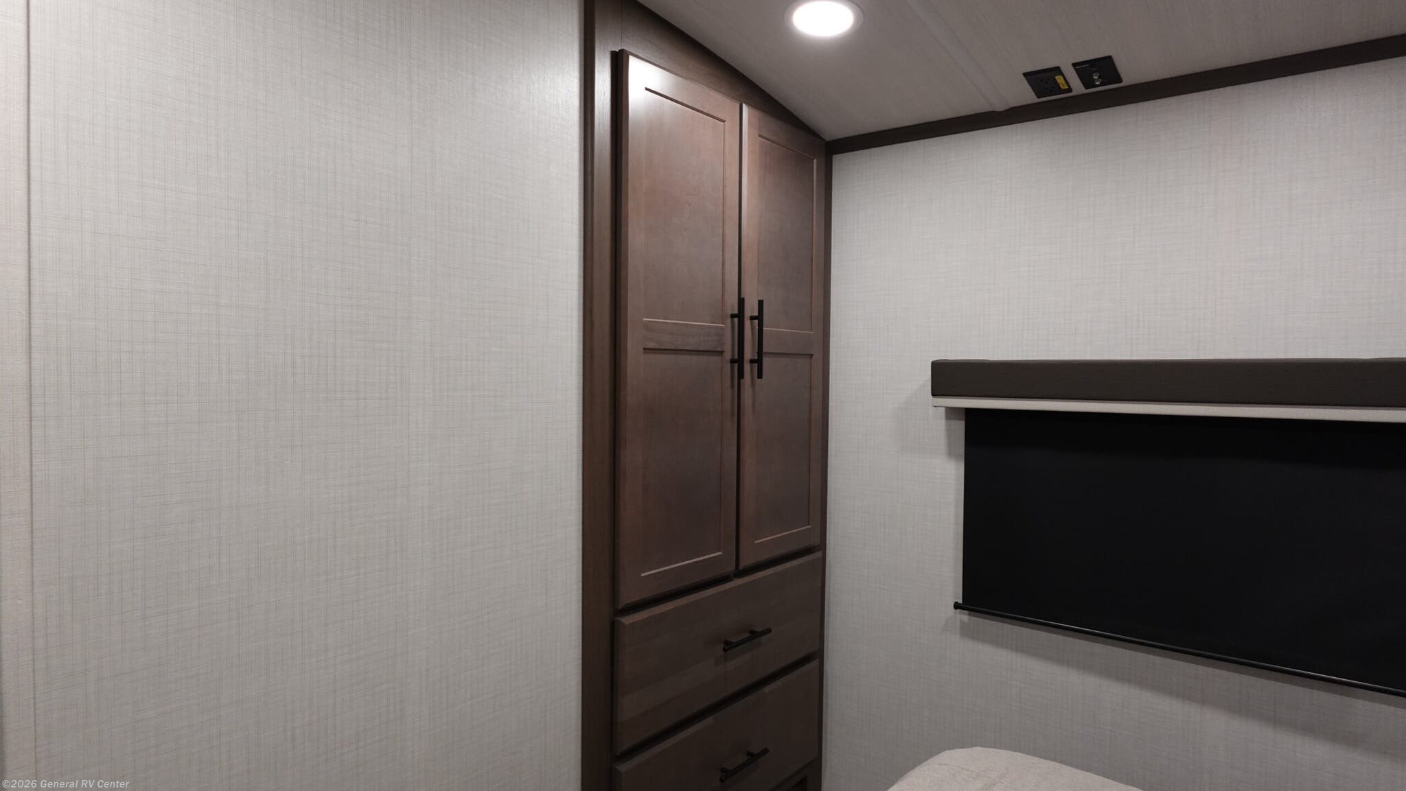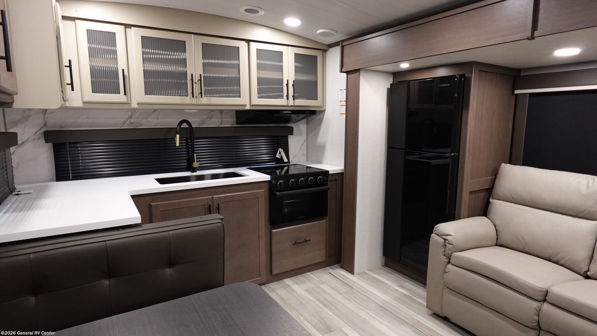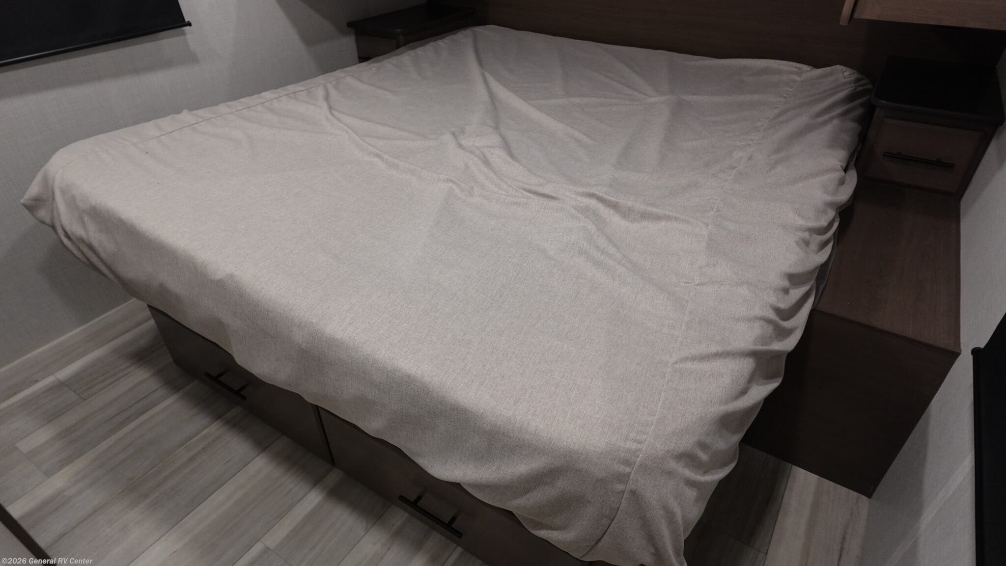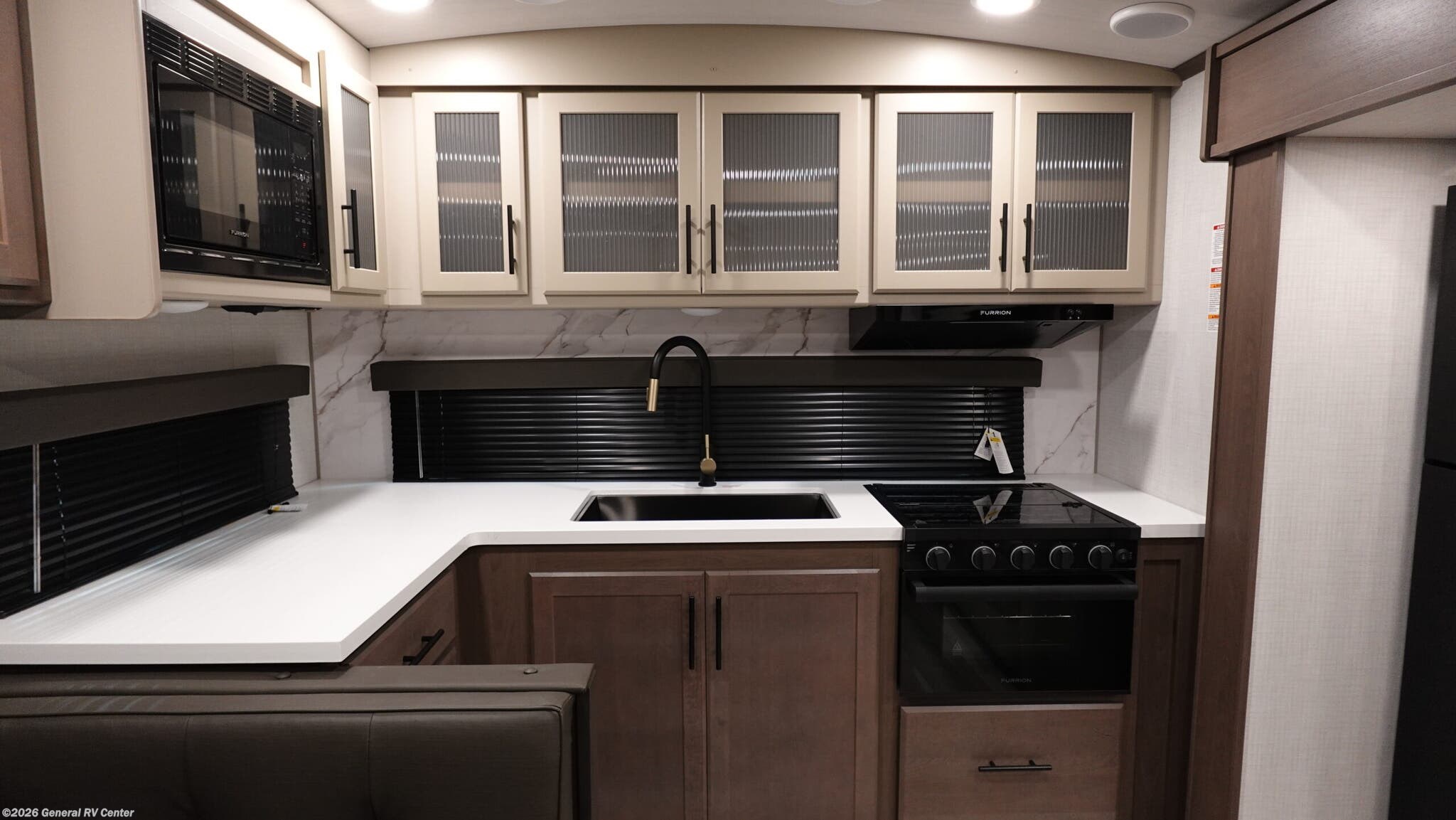 Experience the perfect blend of comfort and adventure with the 2026 Keystone Cougar Half-Ton 25MLE. This travel trailer invites you to explore the open road without sacrificing the comforts of home. With a spacious king bed and two convertible sleeping areas, it can accommodate up to six guests, making it ideal for families or entertaining friends. The rear kitchen layout is a chef's dream, featuring a full-size refrigerator and a three-burner cooktop, offering all the amenities you need to whip up a delicious meal. The center living area, complete with a tri-fold sleeper sofa and booth dinette, provides a cozy space to relax and unwind after a day of exploration. The Cougar 25MLE is designed with convenience in mind. The center bath, equipped with a plastic and glass shower, ensures you have all the essentials at your fingertips. An 18-foot powered retractable awning extends your living space to the outdoors, perfect for enjoying the scenic views or hosting a barbecue with the exterior kitchen. With ample storage throughout, including wardrobe and pantry space, you’ll have no trouble packing all your essentials. The solid step entry ensures easy access, while the automatic heater keeps you warm on chilly nights. Visit your nearest General RV dealership to see how this remarkable travel trailer can elevate your adventures.