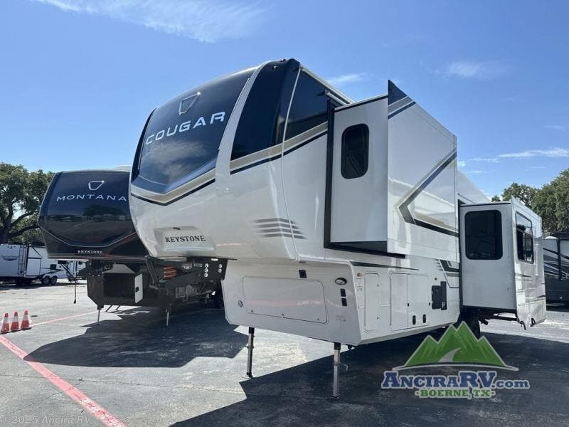 Spend more time having fun and less time worrying about your RV with the Keystone Cougar fifth wheel! These units have all that you will need for excellent vacations. The interior comes hardwood cabinet doors, solid surface kitchen countertops, an Oxygenics shower head and hose, plus a Vent-All window system. You will also appreciate the 12V charging stations throughout, the dual zone Bluetooth audio system, and the on-demand water heater for added comfort. The exterior is also fully outfitted with a convenience center, MaxTurn technology, Lippert axles with anti-lock braking system, and a Curt Road Armor shock absorbing equalizer for smooth towing. Each model is available with the optional Hero Edition. By choosing this edition, you can help support our nation's heros and their families by contributing to the Wounded Warrior Project. This optional package features an industry exclusive full-body paint matte finish, frameless windows, a glass entry door, blackout rims, and green LED exterior accent lighting; see dealer for more details!