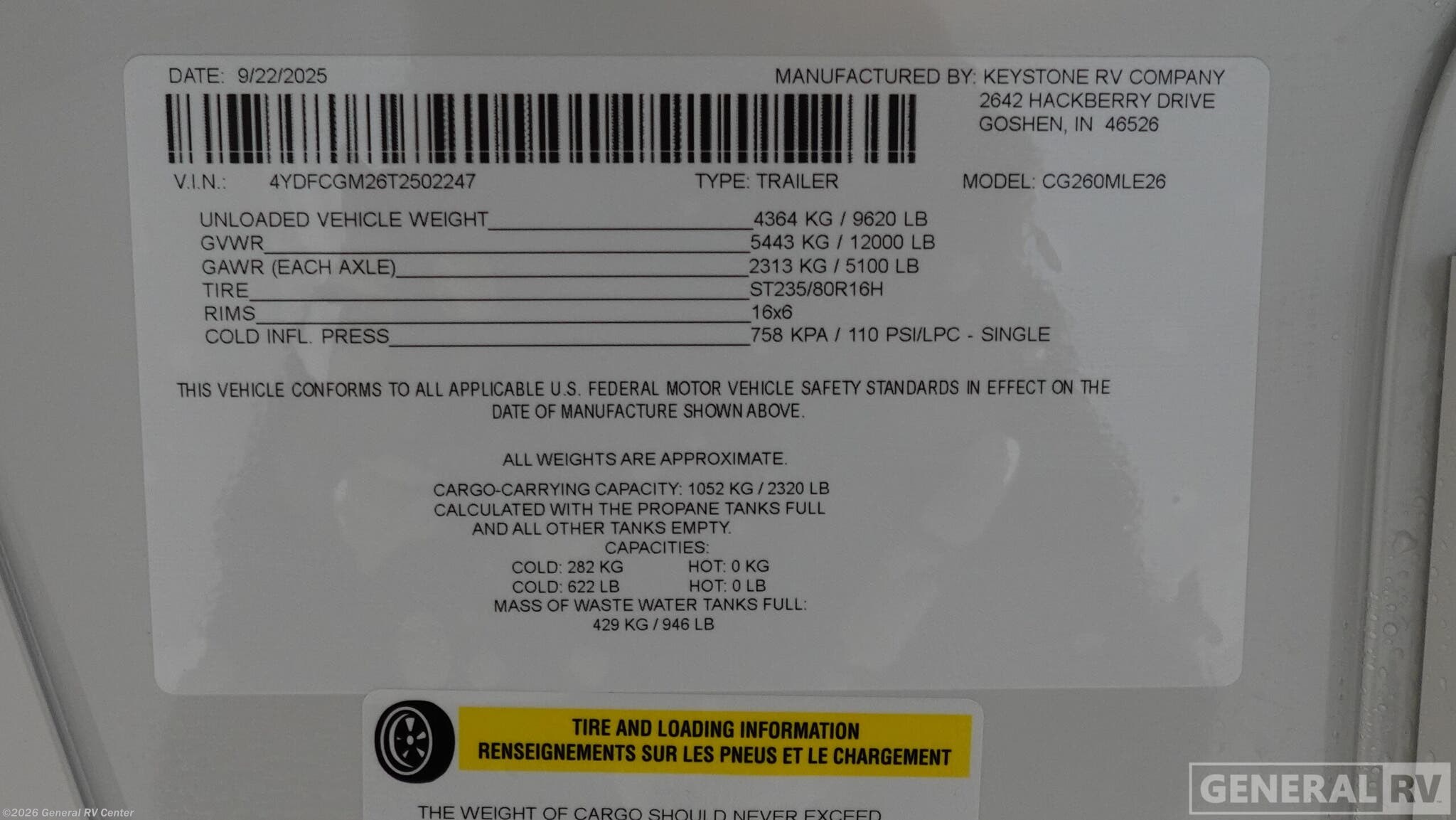 Request More Info on this 2026 Keystone Cougar 260MLE Offered for sale by General RV Center