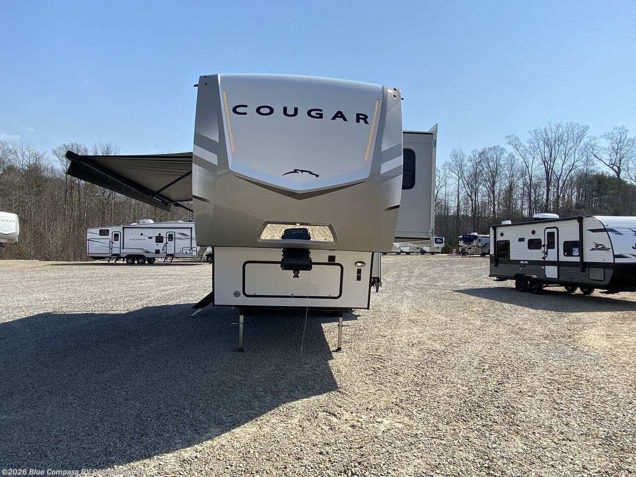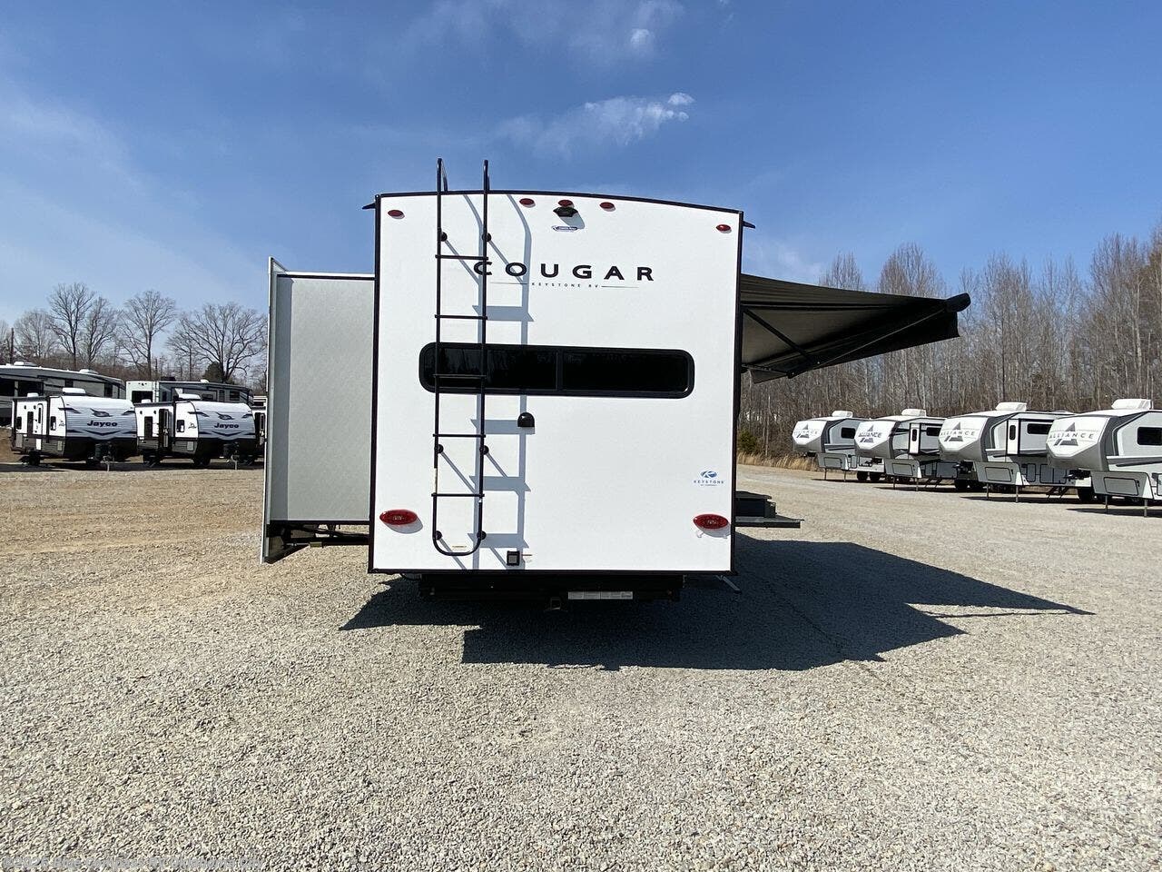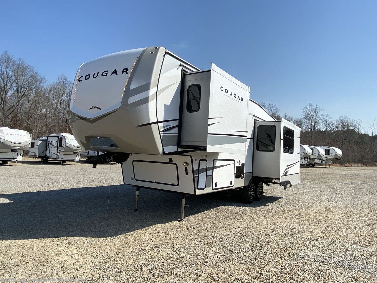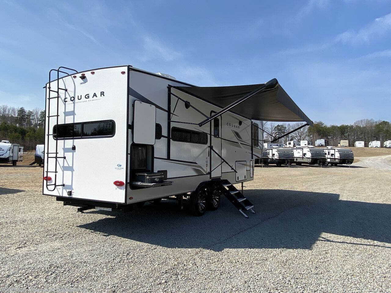 Spend more time having fun and less time worrying about your RV with the Keystone Cougar fifth wheel! These units have all that you will need for excellent vacations. The interior comes hardwood cabinet doors, solid surface kitchen countertops, an Oxygenics shower head and hose, plus a Vent-All window system. You will also appreciate the 12V charging stations throughout, the dual zone Bluetooth audio system, and the on-demand water heater for added comfort. The exterior is also fully outfitted with a convenience center, MaxTurn technology, Lippert axles with anti-lock braking system, and a Curt Road Armor shock absorbing equalizer for smooth towing. Each model is available with the optional Hero Edition. By choosing this edition, you can help support our nation's heros and their families by contributing to the Wounded Warrior Project. This optional package features an industry exclusive full-body paint matte finish, frameless windows, a glass entry door, blackout rims, and green LED exterior accent lighting; see dealer for more details!