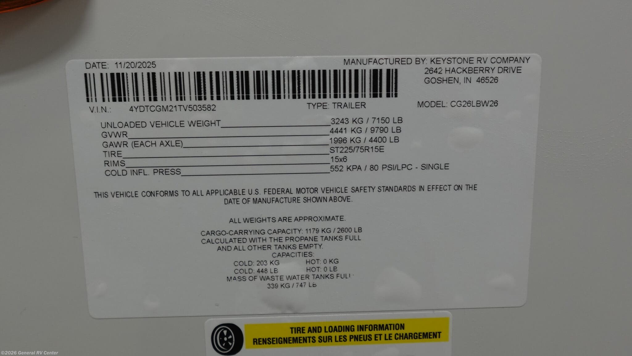 Request More Info on this 2026 Keystone Cougar 26LBW Offered for sale by General RV Center