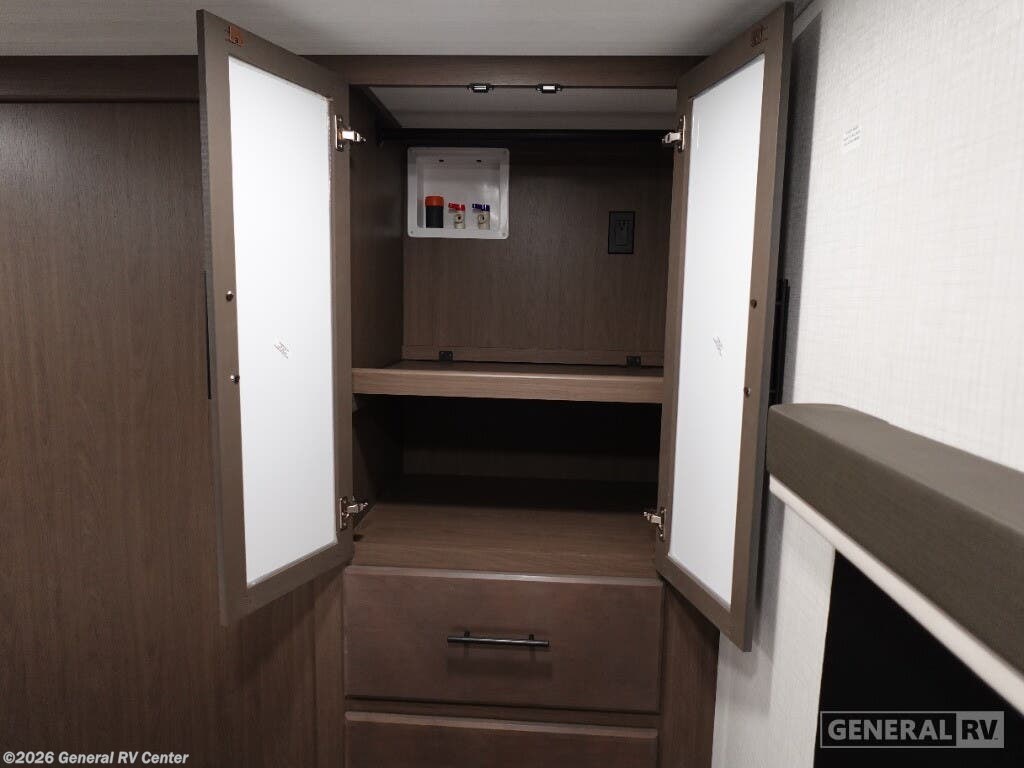 Explore the 2025 Keystone Cougar Half-Ton 26RES, where comfort and innovation meet in a perfect blend. This RV is designed to accommodate up to four guests, with a cozy queen bed and a convertible sleeping area. The heart of this model is its center kitchen, equipped with a full-size electric refrigerator and a three-burner cooktop, making meal preparation a breeze. The sliding desk/dinette offers flexible space for dining or working on the road, while the rear living area invites relaxation with its tri-fold sofa, perfect for unwinding after a day of adventure. The Cougar Half-Ton 26RES features a thoughtfully designed center bath with a 36" x 30" shower, ensuring a refreshing experience. The front bedroom offers a private retreat with ample wardrobe space, and the RV is prepped for a washer and dryer, adding convenience to your travels. Outside, the 18 ft. powered retractable awning provides a shaded outdoor space, ideal for enjoying the great outdoors. With a generous cargo capacity and an unobstructed pass-thru storage, this RV is ready for any journey you embark on. Discover more about this model at your nearest General RV dealership and start planning your next adventure!