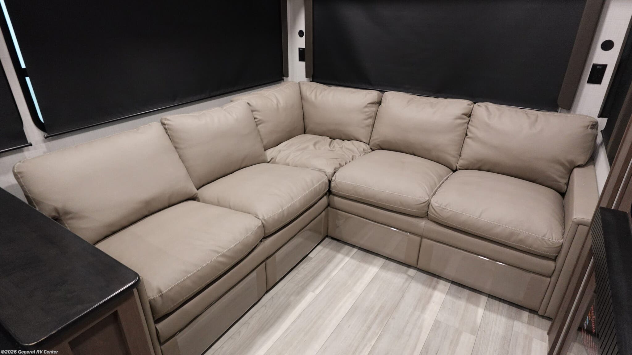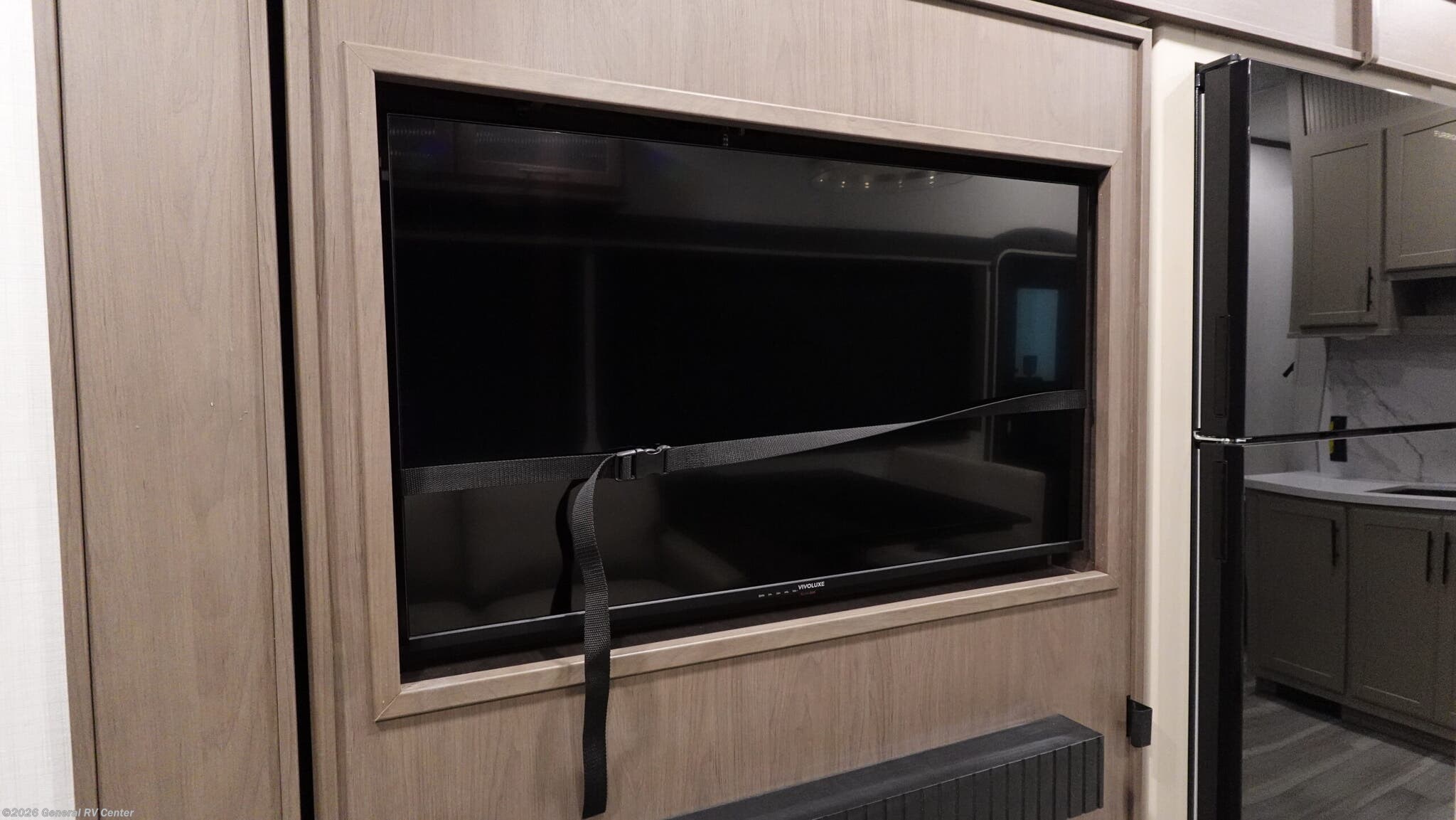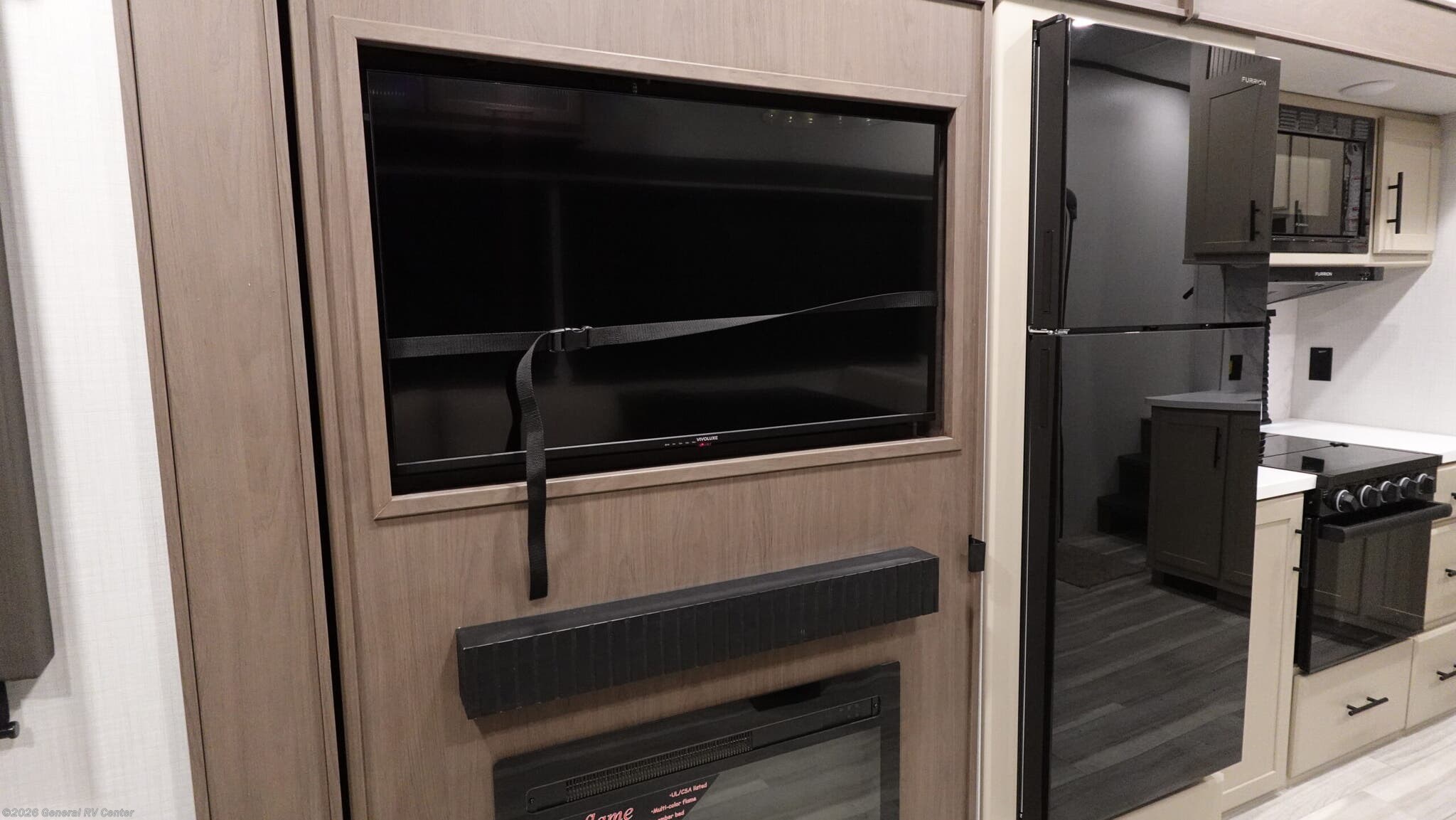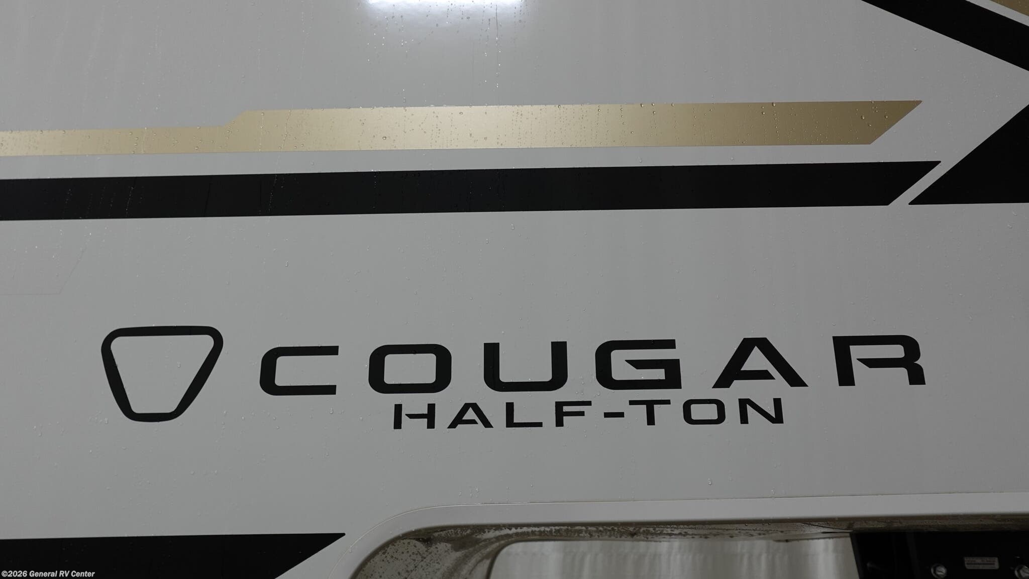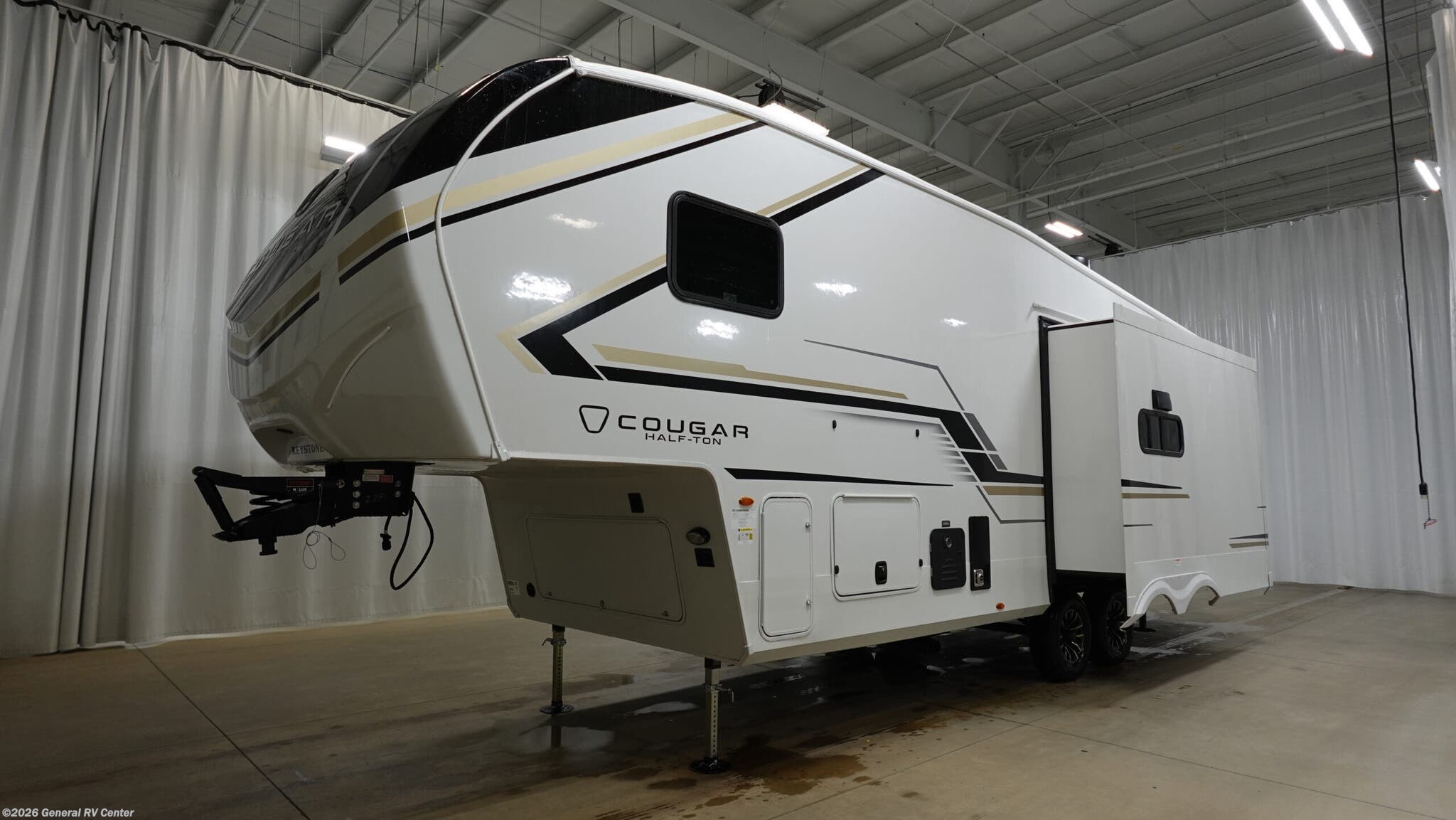 Keystone Cougar Half-Ton fifth wheel 26RES highlights: - L-Shaped Sectional Sofa - 18' Power Awning - Front Private Bedroom - Ceiling Fan Comfort is just a step away in this fifth wheel with a large slide out. Here, you'll find the hidden pantry behind the pivoting entertainment door plus your kitchen appliances. The stainless steel sink will let you easily clean up, and the pivot dinette with two extra folding chairs provides versatile space to dine or work. Your crew can get comfortable on the L-shaped sofa after dinner, or head outdoors under the 18' power awning. A full bath lets you clean up after a day at the lake, and the front private bedroom with a king bed gives you your own space at night. There are also dual wardrobes and nightstands plus a wardrobe with washer and dryer prep for the option to go full-time! The Keystone Cougar Half-Ton fifth wheel and travel trailers are known as one of America's favorites for a reason! Some of those reasons are the exclusive features that come from Keystone, like the Winegard Air 360+ omni-directional rooftop antenna, the in-floor heating ducts, and the HyperCore composite wall construction with Vixen Fibrogloss high-gloss finish. The Cougar Half-Ton has a Climate Guard protection package with heat-deflecting white sidewalls, two roof attic vents, PEX plumbing and more to enjoy four season camping. Inside, you'll love the dimmable lighting, night roller shades throughout, shower skylight, and bedside USB outlets to keep your electronics charged.