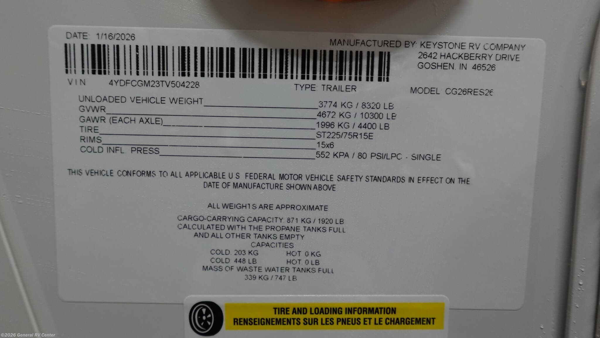 Request More Info on this 2026 Keystone Cougar 26RES Offered for sale by General RV Center
