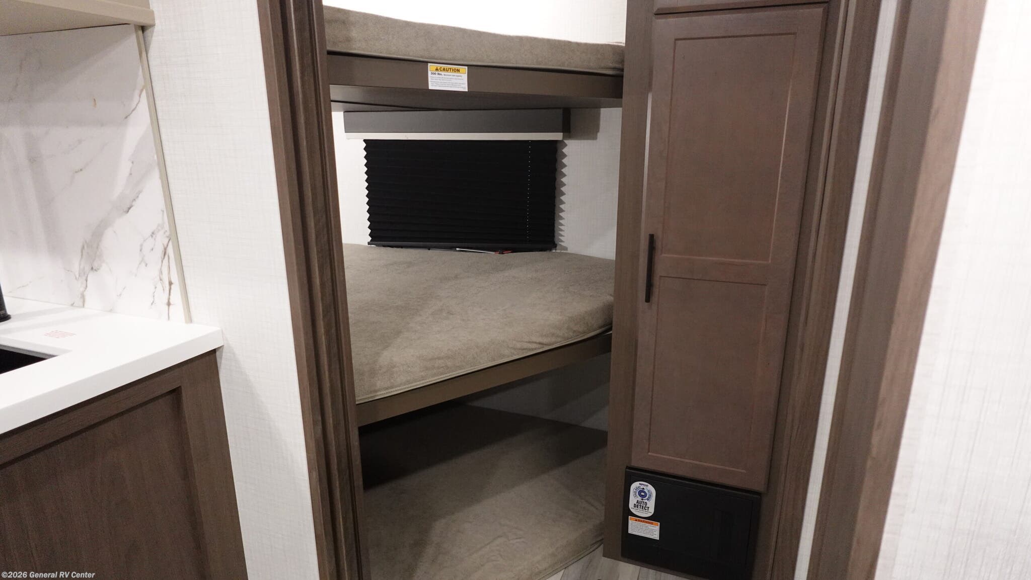 Discover the 2026 Keystone Cougar Sport 2700BH, a travel trailer designed to make every adventure memorable. With a length of just over 32 feet, this RV is spacious enough to comfortably accommodate up to nine people. The layout is perfect for families or groups, featuring a front queen bedroom for privacy and a cozy bunkhouse at the rear with three bunks. The center kitchen and living area create a welcoming space to gather, complete with a convertible dinette and a tri-fold sleeper sofa for additional sleeping options. The full-size electric refrigerator ensures you have plenty of space for all your culinary needs, while the three-burner cooktop makes meal prep a breeze. The Cougar Sport 2700BH is designed with convenience in mind. Enjoy the ease of a powered 20-foot retractable awning, perfect for relaxing outdoors. The pass-thru storage offers ample space for all your gear, making it easy to pack for extended trips. Inside, the automatic heater keeps you warm on chilly nights, and the thoughtfully designed bathroom with a plastic/glass shower ensures comfort on the road. With a GVWR of 9500 lbs and a cargo capacity of 1920 lbs, this travel trailer is both robust and versatile. For more details and to experience this RV firsthand, visit your nearest General RV dealership.