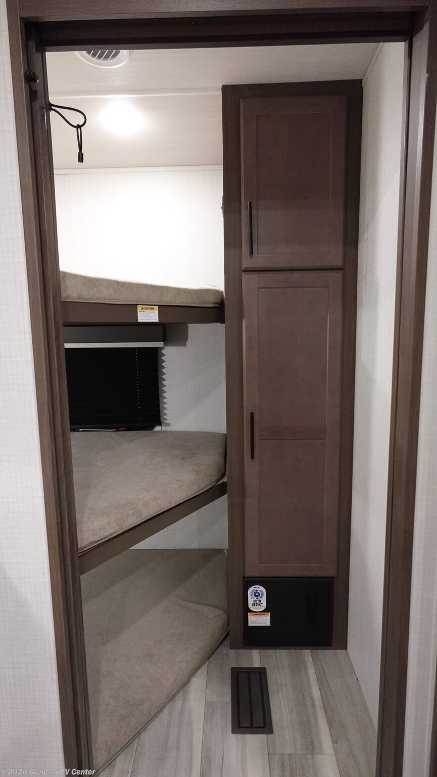 Discover the 2026 Keystone Cougar Sport 2700BH, a travel trailer designed to make every adventure memorable. With a length of just over 32 feet, this RV is spacious enough to comfortably accommodate up to nine people. The layout is perfect for families or groups, featuring a front queen bedroom for privacy and a cozy bunkhouse at the rear with three bunks. The center kitchen and living area create a welcoming space to gather, complete with a convertible dinette and a tri-fold sleeper sofa for additional sleeping options. The full-size electric refrigerator ensures you have plenty of space for all your culinary needs, while the three-burner cooktop makes meal prep a breeze. The Cougar Sport 2700BH is designed with convenience in mind. Enjoy the ease of a powered 20-foot retractable awning, perfect for relaxing outdoors. The pass-thru storage offers ample space for all your gear, making it easy to pack for extended trips. Inside, the automatic heater keeps you warm on chilly nights, and the thoughtfully designed bathroom with a plastic/glass shower ensures comfort on the road. With a GVWR of 9500 lbs and a cargo capacity of 1920 lbs, this travel trailer is both robust and versatile. For more details and to experience this RV firsthand, visit your nearest General RV dealership.