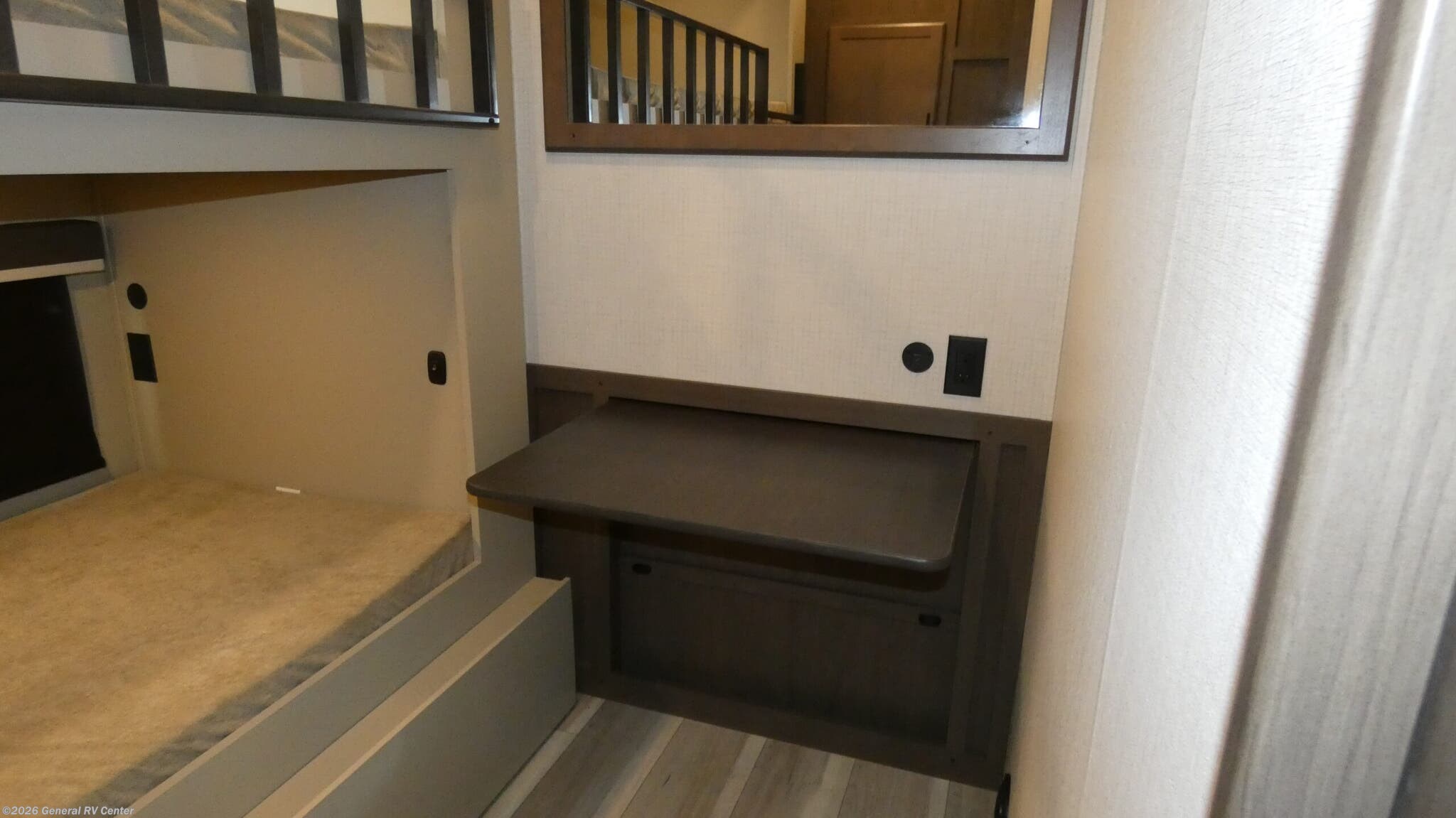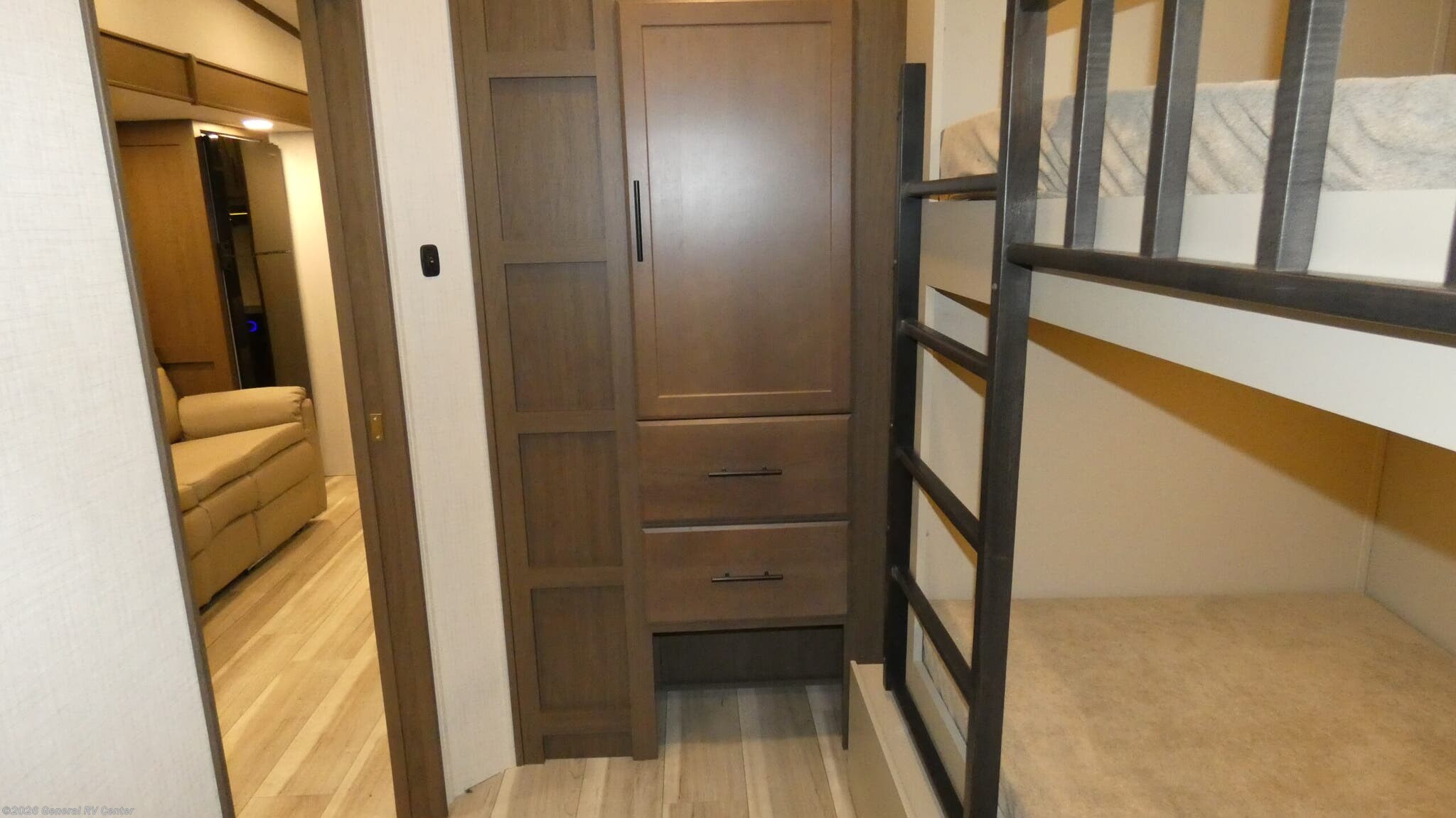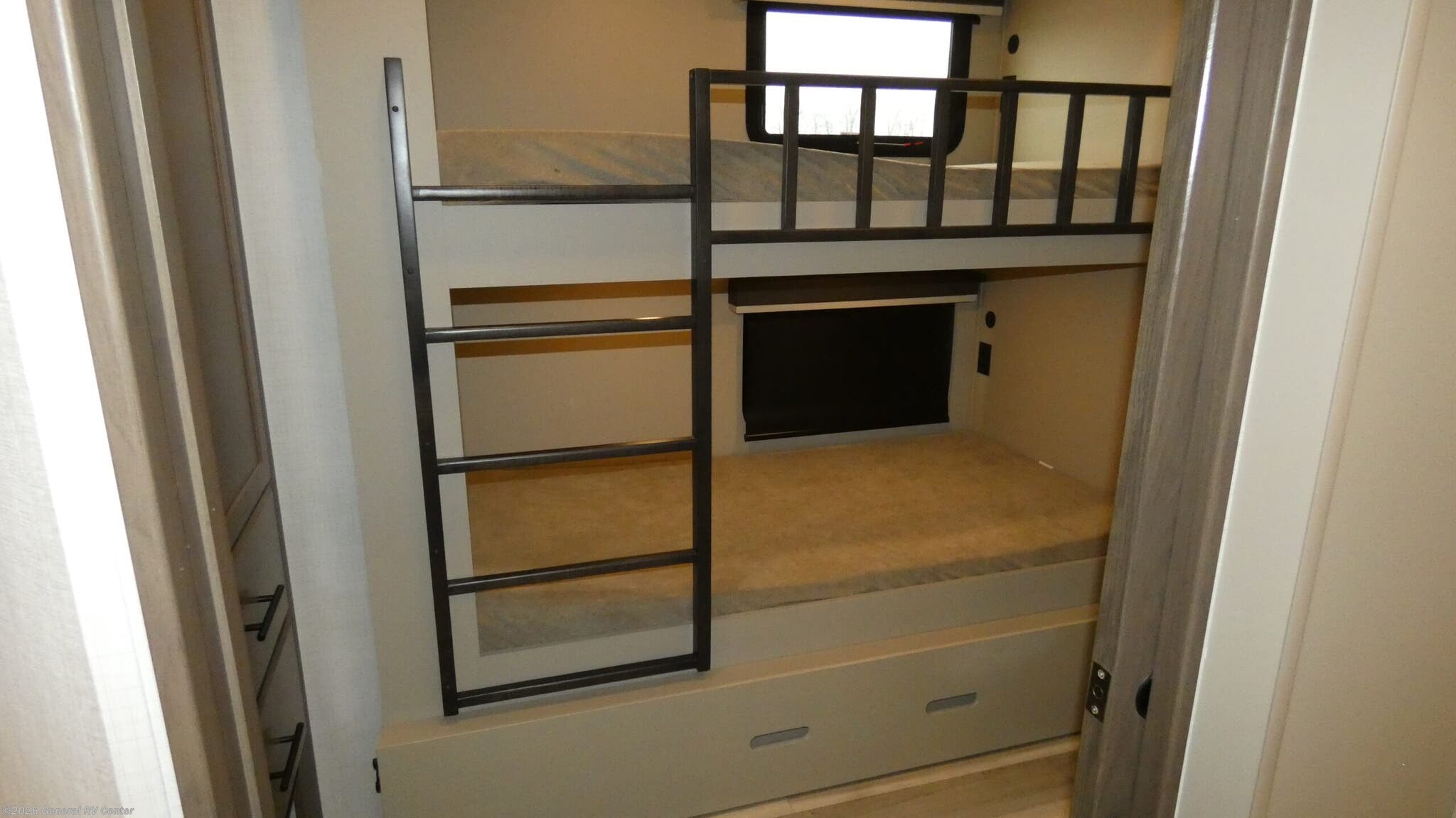 **Keystone Cougar Half-Ton fifth wheel 29MBD highlights:** * King Bed * Middle Bunkroom * Rear Kitchen * Two Awnings The whole crew will love camping trips in this spacious fifth wheel! From the front bedroom with a walk-around king bed to the rear kitchen with ample counter space, this is something for everyone. A middle bunkroom includes built-in bunk beds with a lower trundle bed and a flip-up table if some work needs done. Once your meals are made, you can dine at the booth dinette, relax on the sofa, or head outdoors to enjoy the power awnings. The full bath is towards the front near the bedroom for convenience. Here, you'll find a king bed, dual nightstands, plus a wardrobe with washer and dryer prep if you choose to add these appliances! The Keystone Cougar Half-Ton fifth wheel and travel trailers are known as one of America's favorites for a reason! Some of those reasons are the exclusive features that come from Keystone, like the Winegard Air 360+ omni-directional rooftop antenna, the in-floor heating ducts, and the HyperCore composite wall construction with Vixen Fibrogloss high-gloss finish. The Cougar Half-Ton has a Climate Guard protection package with heat-deflecting white sidewalls, two roof attic vents, PEX plumbing and more to enjoy four season camping. Inside, you'll love the dimmable lighting, night roller shades throughout, shower skylight, and bedside USB outlets to keep your electronics charged.