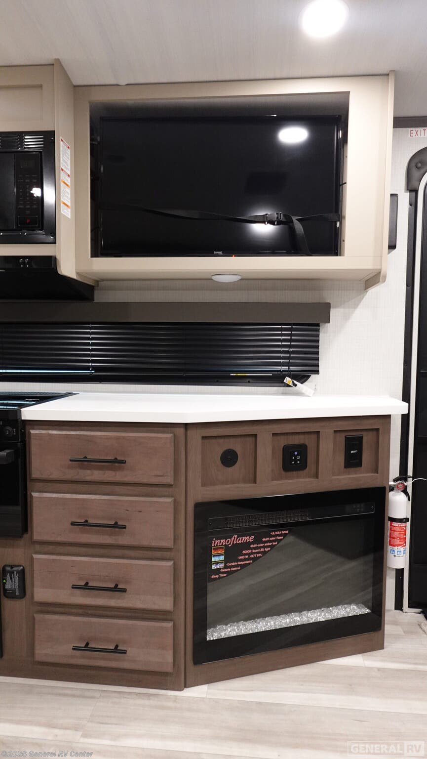Experience the perfect blend of comfort and adventure with the 2026 Keystone Cougar Half-Ton 30BHS. This RV is designed to be your home away from home, featuring a spacious layout that comfortably sleeps up to ten people. With two double beds, a king bed, and two convertible sleeping areas, everyone will find their perfect spot to rest after a day of exploration. The center kitchen, equipped with a full-size electric refrigerator and a three-burner cooktop, makes meal prep a breeze, allowing you to whip up your favorite dishes with ease. The Cougar 30BHS also boasts a cozy living area with a 68" tri-fold sleeper sofa and a booth dinette, perfect for family gatherings or movie nights by the fireplace. The thoughtful design extends to the bathroom, featuring a plastic and glass shower for a refreshing experience. Outside, a 19-foot powered retractable awning provides ample shade for those sunny days, while the cargo door and mini refrigerator make outdoor entertaining effortless. With its robust construction and thoughtful amenities, this RV is ready to take you on unforgettable journeys. For more details and to see it in person, visit your nearest General RV dealership.