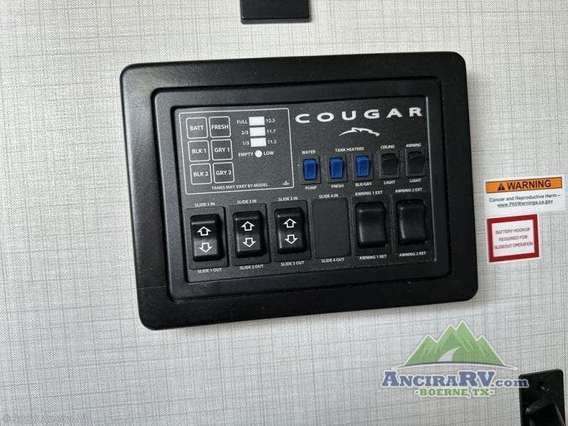 Spend more time having fun and less time worrying about your RV with the Keystone Cougar fifth wheel! These units have all that you will need for excellent vacations. The interior comes hardwood cabinet doors, solid surface kitchen countertops, an Oxygenics shower head and hose, plus a Vent-All window system. You will also appreciate the 12V charging stations throughout, the dual zone Bluetooth audio system, and the on-demand water heater for added comfort. The exterior is also fully outfitted with a convenience center, MaxTurn technology, Lippert axles with anti-lock braking system, and a Curt Road Armor shock absorbing equalizer for smooth towing. Each model is available with the optional Hero Edition. By choosing this edition, you can help support our nation's heros and their families by contributing to the Wounded Warrior Project. This optional package features an industry exclusive full-body paint matte finish, frameless windows, a glass entry door, blackout rims, and green LED exterior accent lighting; see dealer for more details!