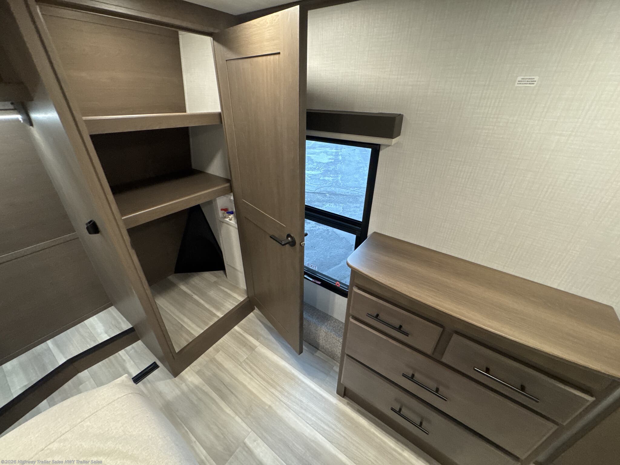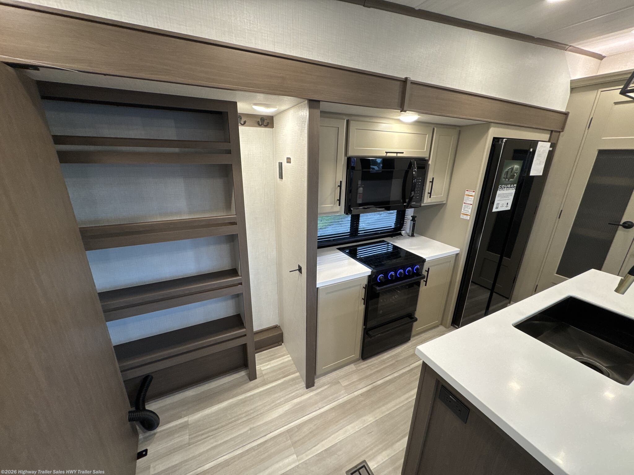 This 2026 Keystone Cougar 316RLS is the perfect rig for your adventures and explorations. By owning this 2026 Keystone Cougar 316RLS, you’re joining the Keystone family! The sleep capacity allows you to bring up to 6 along on your travels in this rig. With three slides, this rig feels roomy and spacious inside. Entertain or cook up a cozy meal just for you in this RV kitchen equipped with the fridge, oven, stove. The theater seating and , or TV make it easy to spend time together as a family. Use the free standing dinette w/chairs for dinner time, homeschooling or remote work days. Traveling couples love this rig thanks to the king size bed. Keep a comfortable temperature inside your rig with the heating option. Go longer without filling up thanks to the 75 gallon fresh water tanks. While the inside of this rig is enough on its own, the outside also features alloy wheels, automatic leveling jacks, black tank flush, detachable power cord, enclosed underbelly, exterior speakers, external shower, fiberglass sidewalls, full body paint, heated underbelly, hitch, ladder, pass thru storage, power awning, power roof vent, powered landing legs, roof vent, screen door, second roof a/c, skylight, slam latch baggage doors, slideout, spare tire kit, tinted windows and upgraded insulation package. Make sure kids don’t track mud inside with the outside shower. Store all the gear you need for your travels with the spacious pass-through storage underneath.