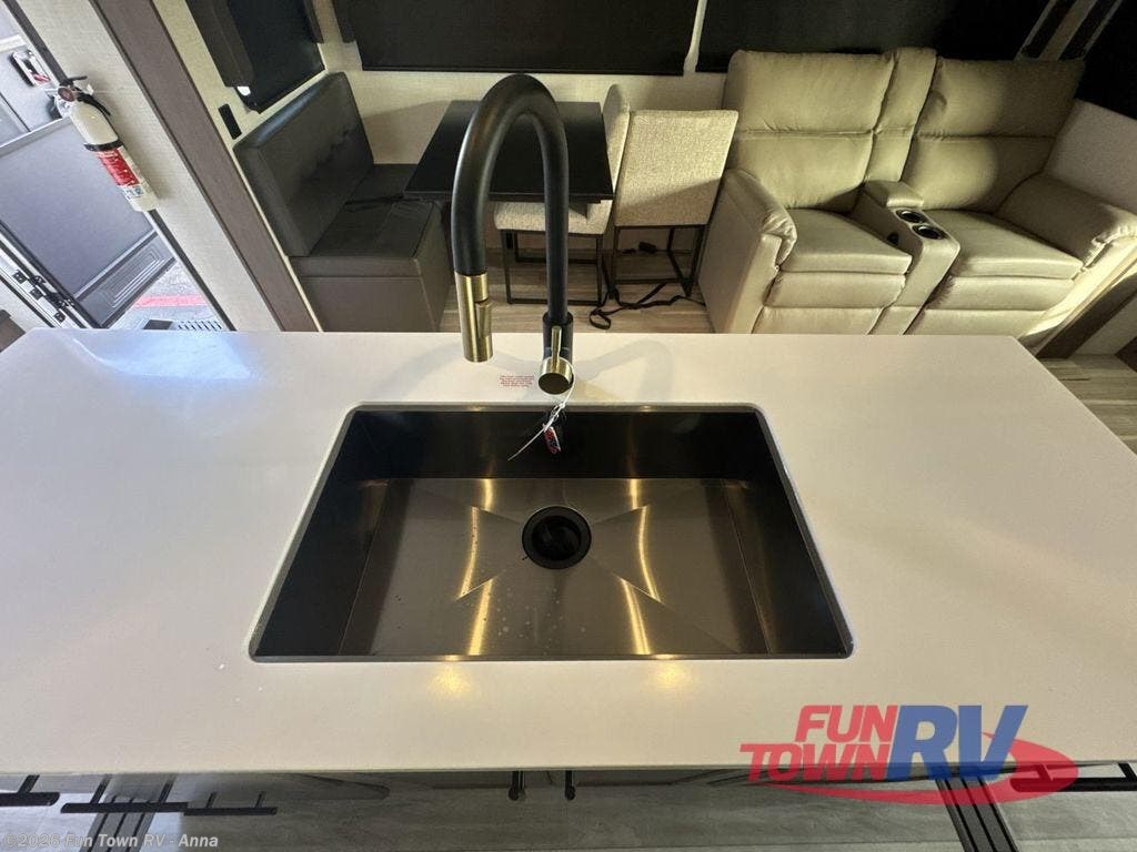 The dual opposing slides in the combined kitchen and living area will give you an open floorplan! You'll sleep on the queen-size bed in the front private bedroom, and there is under-bed storage, a full-height wardrobe, and a dresser with hidden storage for all of your personal belongings. As you spend time in the main living area, you'll appreciate having extra space thanks to the set of opposing slides, and the kitchen island will be easy to work around. You'll be able to relax on the tri-fold sleeper sofa and theater seating while you watch the LED HDTV with an pivoting entertainment door and hidden pantry. There is also a booth dinette with storage drawers, convenient shoe storage right as you enter the unit, and an exterior unobstructed pass-thru storage so nothing gets left behind.