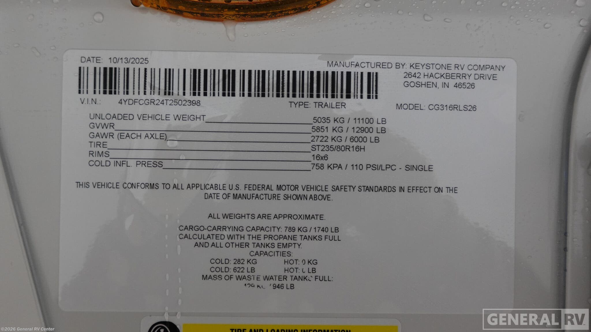 Request More Info on this 2026 Keystone Cougar 316RLS Offered for sale by General RV Center