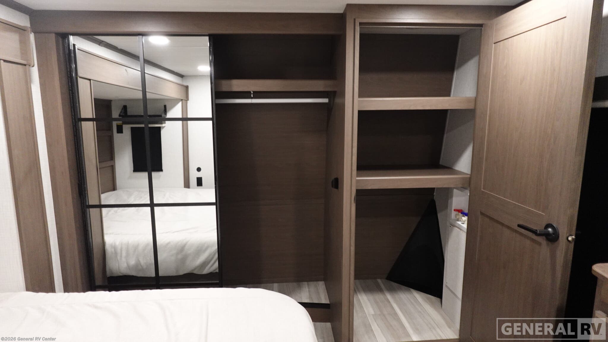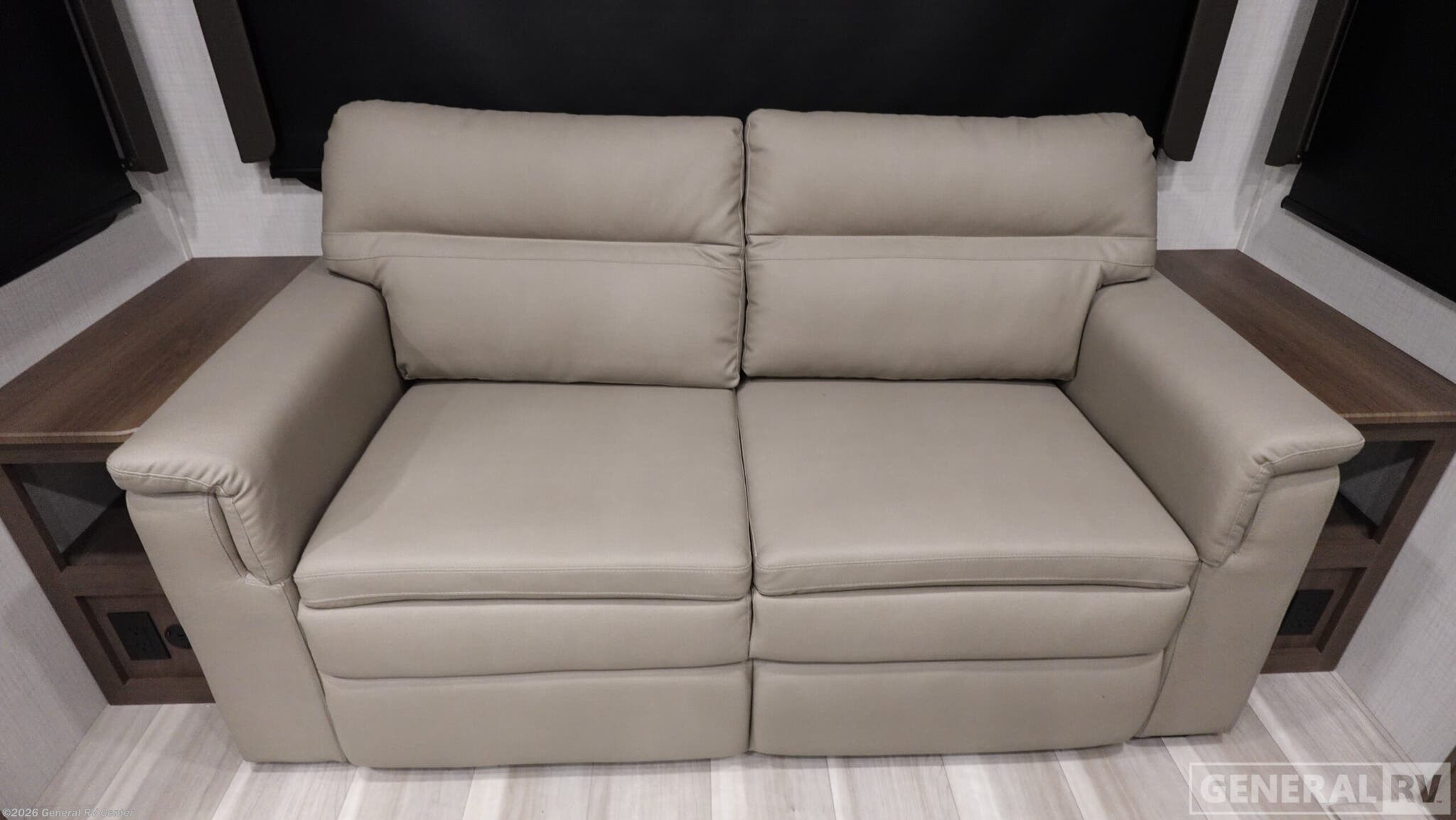 Experience the perfect blend of luxury and functionality with the 2026 Keystone Cougar 316RLS. This fifth wheel is designed to cater to your adventurous spirit while providing the comforts of home. With its spacious interior and thoughtful layout, you'll find room for the whole family, comfortably sleeping up to six. The front bedroom offers a cozy queen bed, with an option to upgrade to a king, ensuring restful nights on the road. The rear living area is an inviting space to unwind, featuring theater seating and a booth dinette, perfect for family meals or game nights. The Cougar 316RLS boasts a well-equipped center kitchen with a full-size electric refrigerator and a three-burner cooktop, making meal prep a breeze. The ample storage, including a pull-out trash bin and pantry, keeps everything organized. The dual awnings extend your living space outdoors, providing shade and shelter for your outdoor gatherings. Plus, with washer and dryer prep, you’re set for extended adventures. This RV is not just a travel companion; it's a lifestyle upgrade. For more details and to see it in person, visit your nearest General RV Dealership.